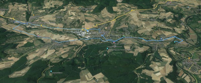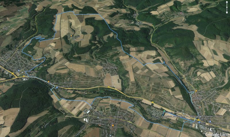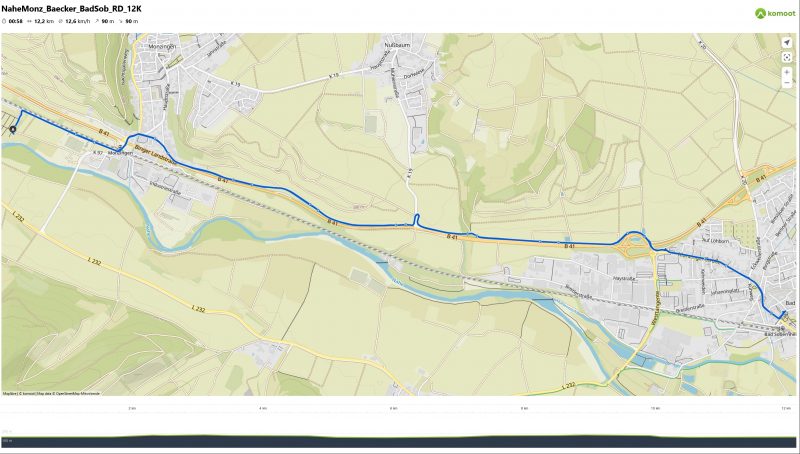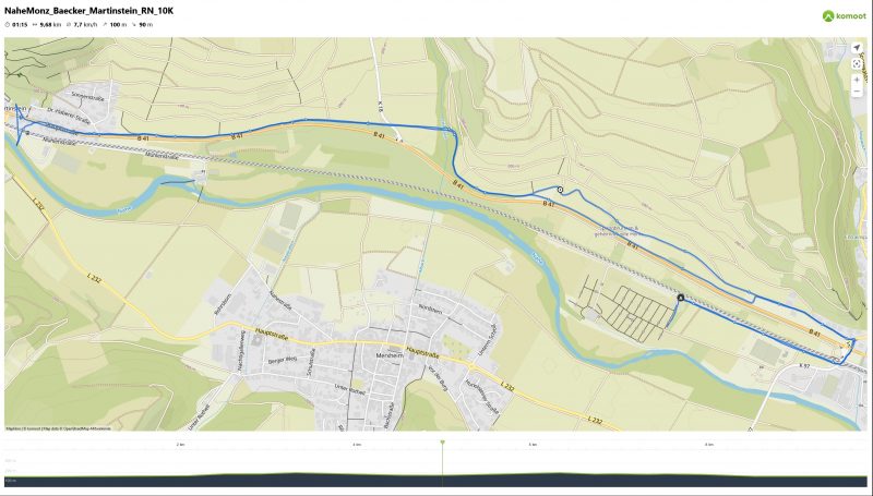 Am ersten Brötchentag wurde wegen drohendem Regengebiet mit dem Faltrad die Bäckerei in Bad Sobernheim aufgesucht. In den Folgetagen passte die Strecke nach Bad Sobernheim gut in die laufenden Trainingsaufgaben aus dem gerade laufenden Garmin Coach Trainingsplan. In die andere Richtung nach Martinstein gibt es allerdings auch eine Filiale des selben Bäckers, die ist 2,5 km näher.