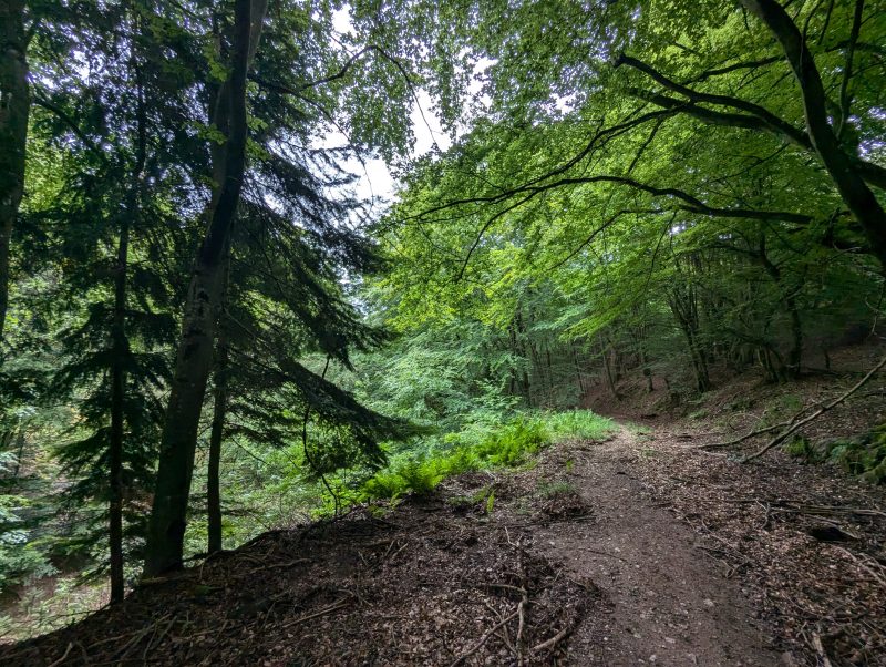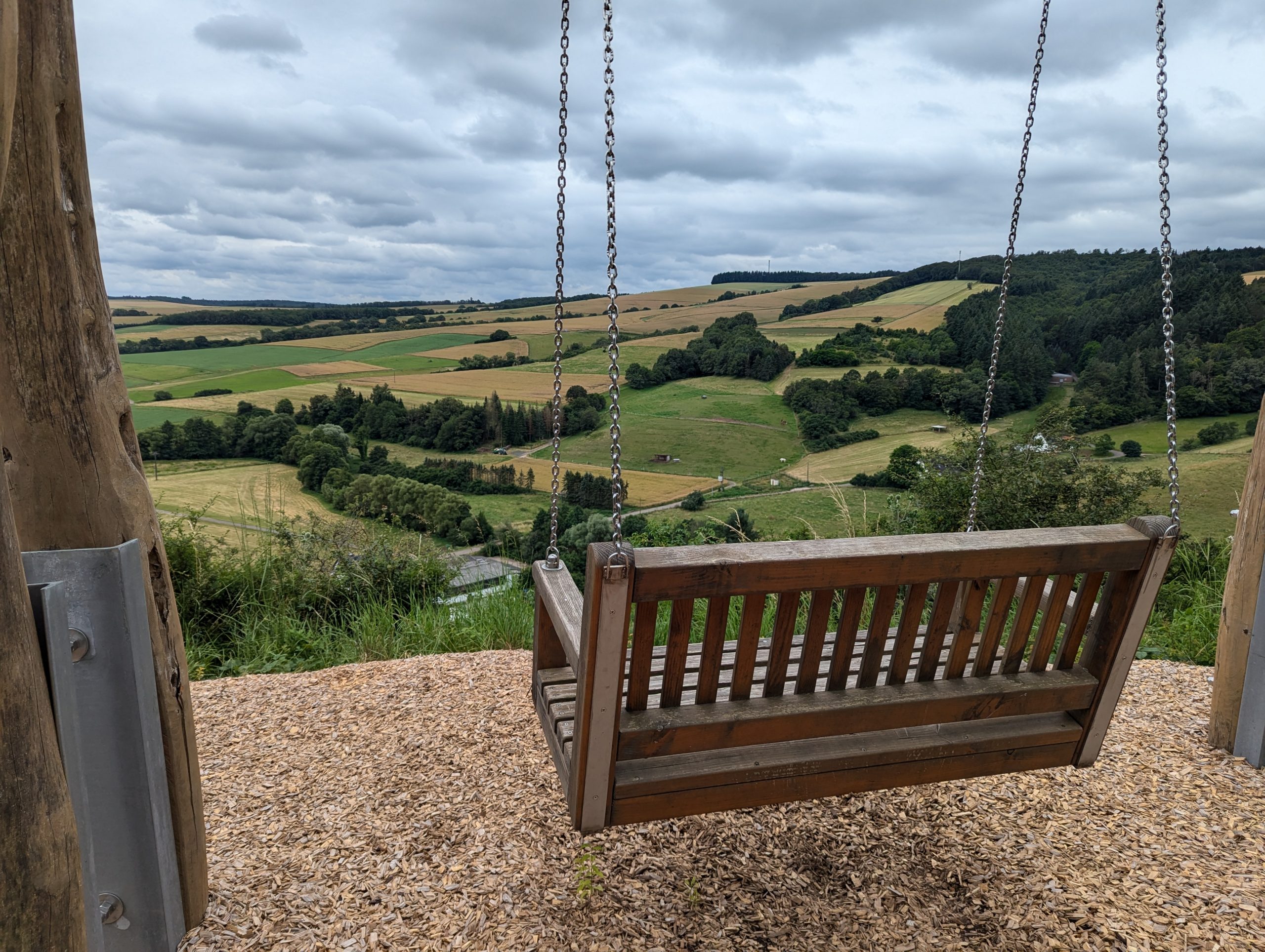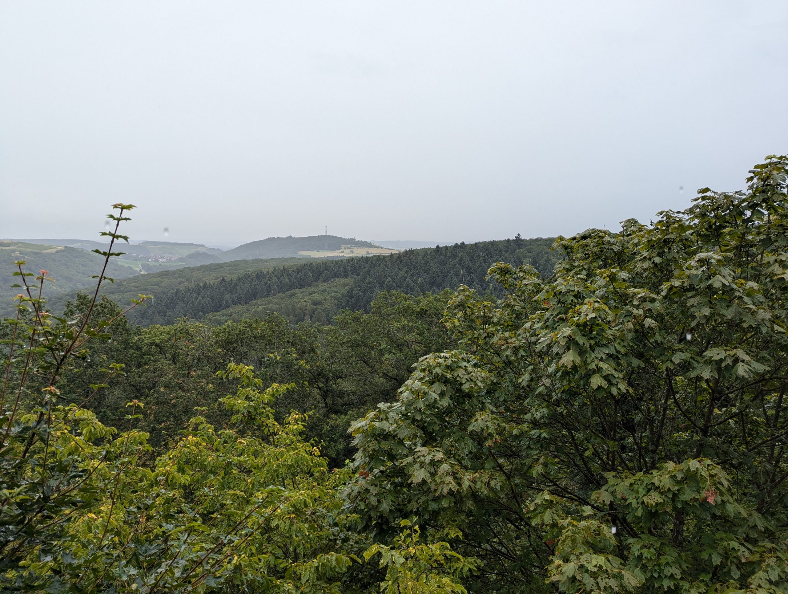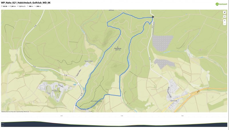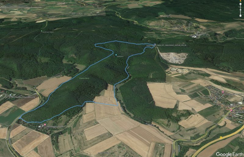 Ungefährt 11 km entfernt vom Campingplatz liegt der Wanderparkplatz Habitchslach. Er ist der Ausgangspunkt dieser Wanderung, die zum Kurhaus am Maasberg führt. Zuerst geht es einen breiten Wirschaftsweg in den Wald hinein, bis wir auf den Rundwanderweg S1 stoßen. Mit ihm geht es hinunter bis zum Kurhaus am Maasberg. An der Anlage vorbei führt ein kleiner Pfad wieder den Wald hinauf, bis wir zu einem Rastplatz am Waldrand mit weiter Aussicht kommen. Nach der verdienten Rast führt uns S1 wieder durch den Wald hinauf bis fast zu unserem Parkplatz. Ein kleines Wegstück müssen wir noch auf breitem Forstweg aber ohne Beschilderung zurücklegen, bis wir wieder am Ausgangspunkt angekommen sind.