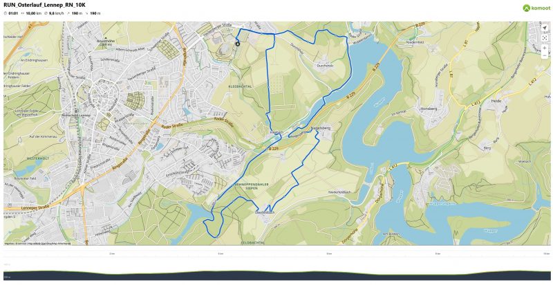 Die 10K Strecke hat 160 Höhenmeter mit kleineren und einem heftigen Anstieg zum Ende bei Kilometer 9 und ist für den aktuelle Trainings- und Gewichtsstand gerade noch machbar.