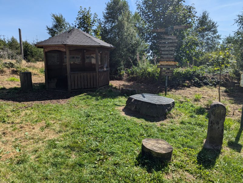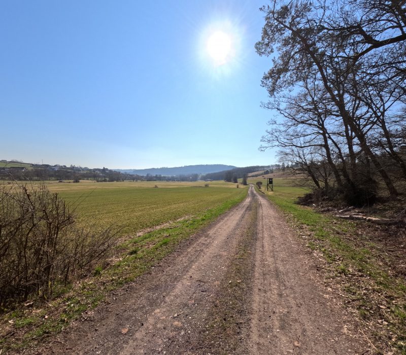 In Fischelbach (430m) folgt der finale Anstieg zum Jagdberg(676m). Am Ziel ist das Thema “Grenzregion” dann auch Thema und an der Grenze zu Hessen darf der Taunusblick natürlich nicht fehlen.