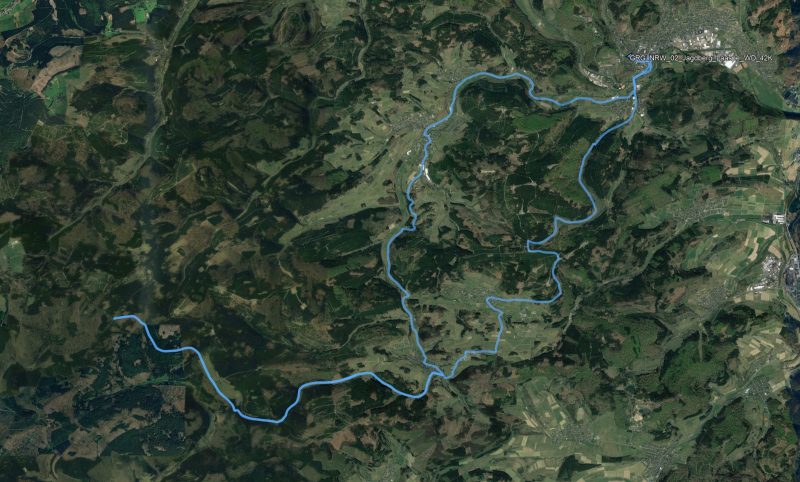 Rund um NRW, das sind ungefähr 1600 Kilometer. Der erste Ansatz war, einen Tagesstandort für den Van zu wählen und dann linksrum eine Wander/Laufrunde von 15 Kilometern und dann rechtsrum eine Radrunde mit 30 Kilometern als Tagesaufgabe zu absolvieren. Am nächsten Tag dann weiter zum nächsten Standort und die Wanderrunde berührt den Punkt der Radrunde vom Vortag.
