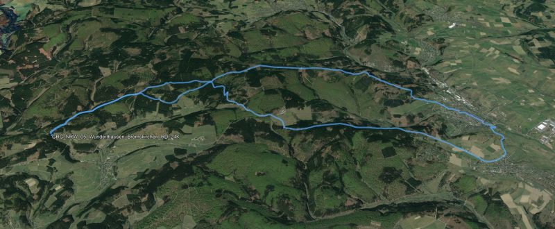 Bei Wunderthausen macht die NRW Grenze einen Bogen nach Osten. Vom Startpunkt WP Sohl beginnt die Runde auf dem gestern gefahrenen Weg in Umfahrung der Waldbearbeitung. Es soll auf dem Höhenzug am Hundsrücken (698) und Heidskopf (704) vorbei runter nach Hallenberg gehen. Die Höhenwege sind bis auf eine Verbindungsstelle auf der nördlichen Route gut befahrbar. Auf dem Rückweg wird diese Schiebestelle mit zugewachsenem Weg auf dem Südhang umgangen.