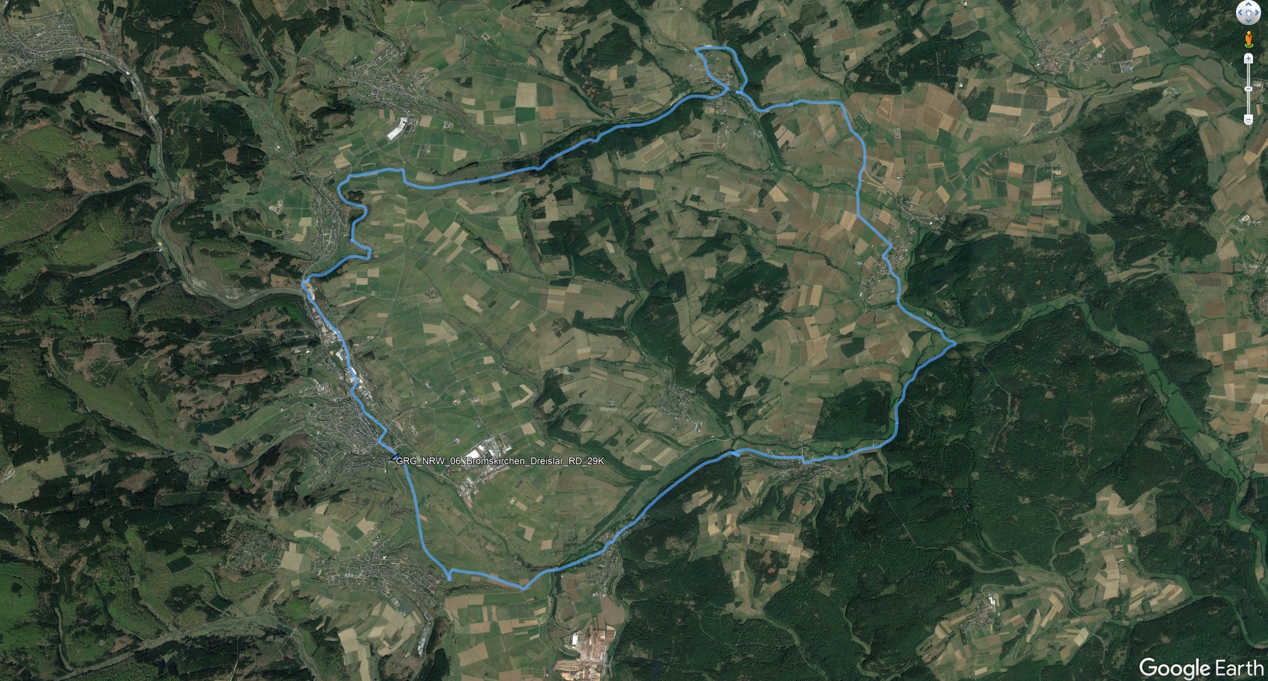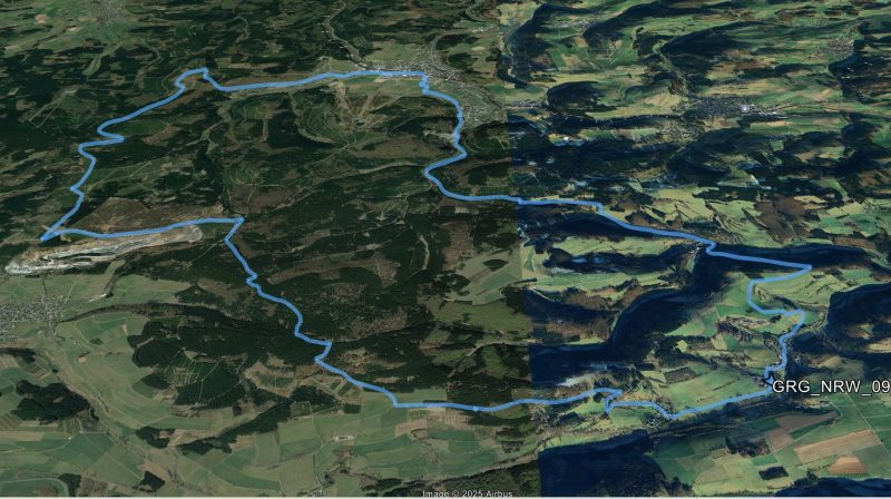 • Das Gebiet (hier NRW) wird laufend und mit dem Rad umrundet.