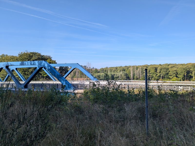 Die NRW Radumrundung beginnt in Würgendorf bei Haiger. Noch in der Rad-Lauf Kombination geht es erst ein paar Kilometer mit dem Rad hoch nach Kalteiche, wo um 1985 ein angehender Softwareentwickler auf der Heimfahrt von Frankfurt nach Dortmund seinen VW 1200 die verschneite Fahrbahn hochtrieb. Hier vierzig Jahre später die Autobahn zu unterqueren und festzustellen, das die Brücken von damals nicht so lange durchgehalten haben ist schon ein inneres Innehalten wert.