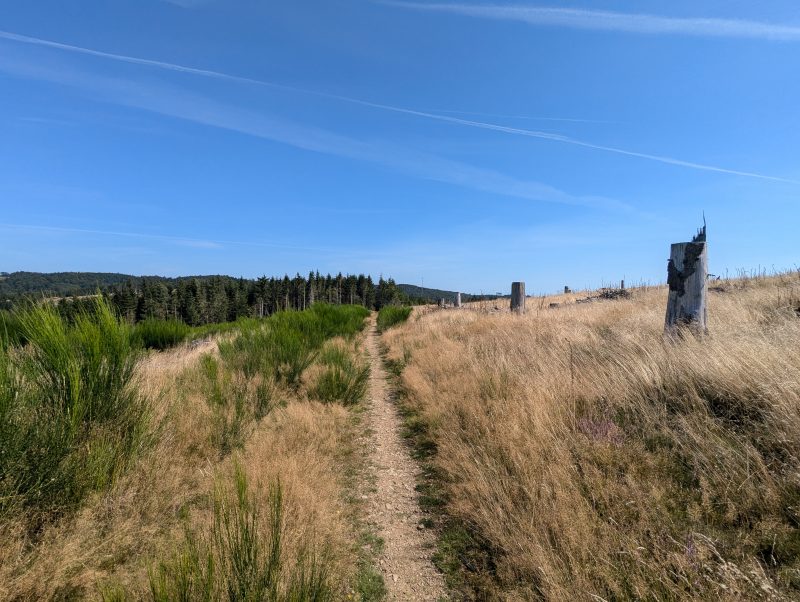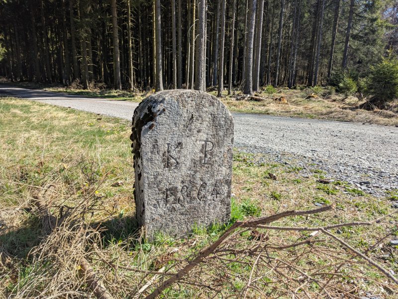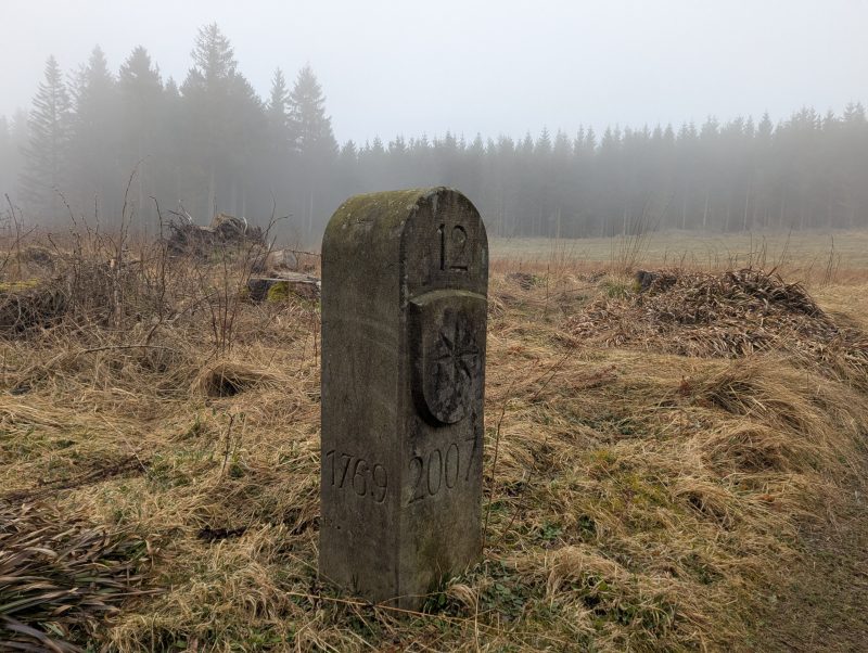 Der Kammweg ist in großen Teilen auch Grenzweg und wird von alten und erneuerten Grenzsteinen gesäumt.