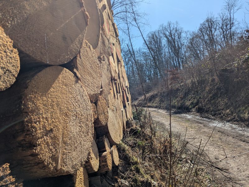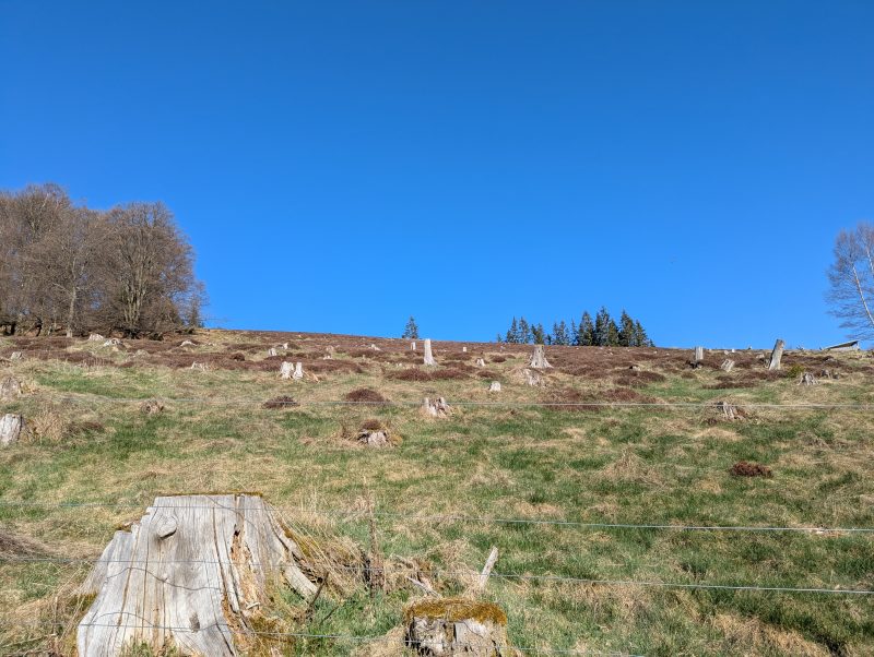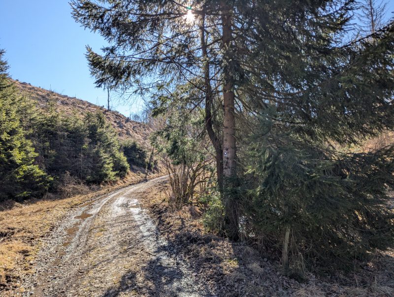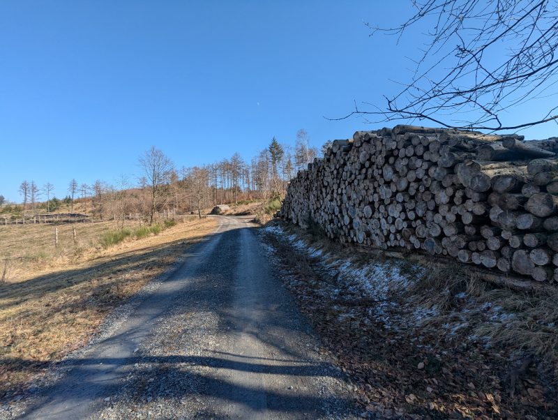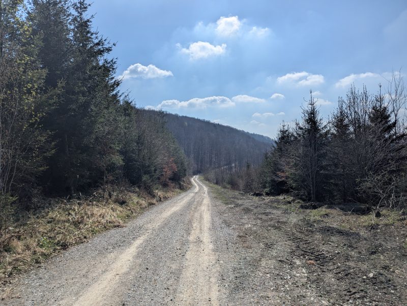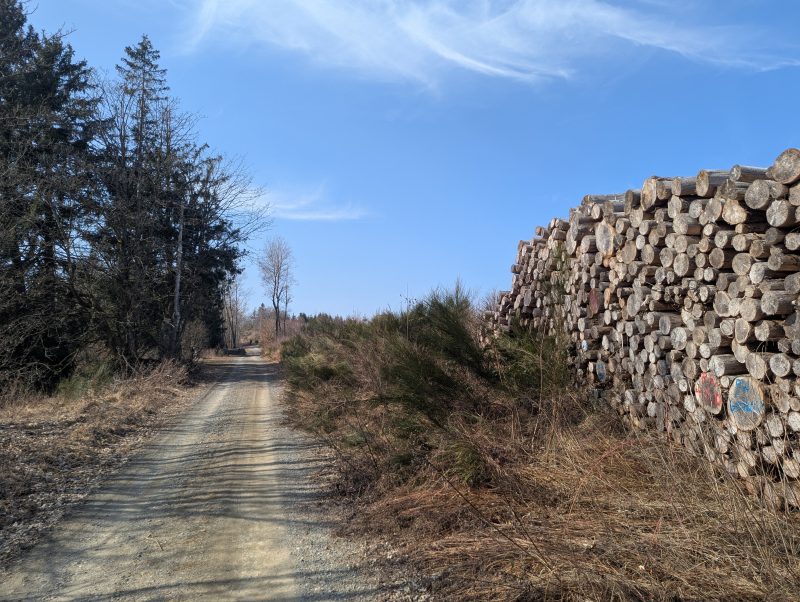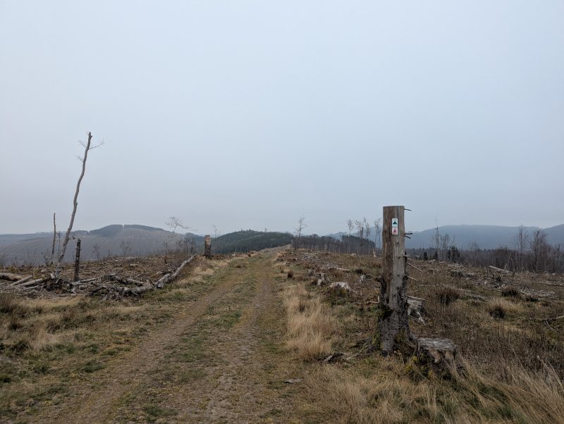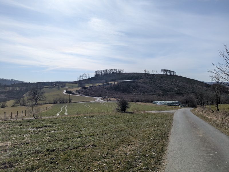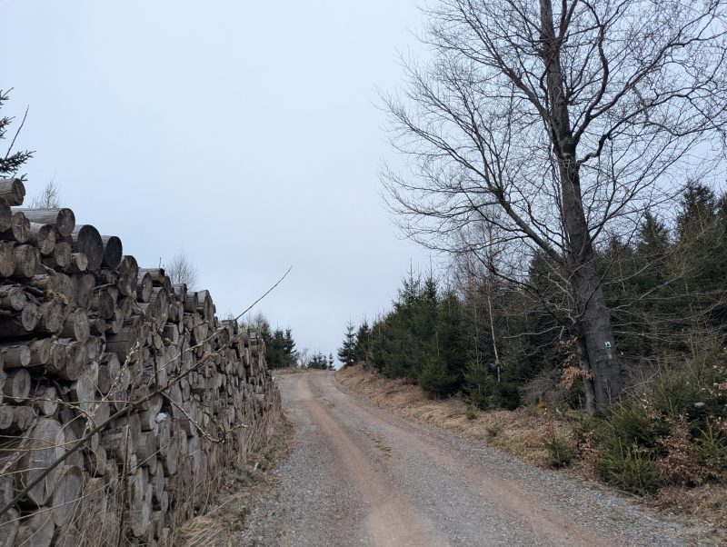 Vom Sportlerheim in Elsoff geht es zur Vermeidung von zu steilen Anstiegen nach Süden um den Heilgenberg zum ersten Grenzpunkt dieser Tour. Der gut befahrbare Weg folgt der Grenze nach Norden durch Wiesen, Rodungsflächen und Restwaldbeständen an einsam liegenden Höfen vorbei bis Dachsloch, einem Ausflugslokal aus besseren Zeiten. Vom Dachsloch steigt es weiter an Richtung Astenberg. Um nicht nach Wunderthausen hinab fahren zu müssen folgt die Wegführung von der Passhöhe der L717 zur Kehre der K1 und einem Hangweg zum Wanderparkplatz “im Sohl”, der aber leider wegen Waldarbeiten gesperrt war. Das konnte aber nach einigen Schiebehöhenmetern auf der anderen Bergseite umgangen werden.