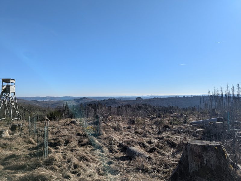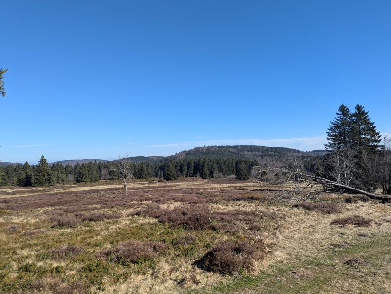 Hier drängen sich wieder die Fernwanderweg und die Wanderziele des Tourismuszentrum Willingen sind an den vielen rad und wandernden Mitmenschen zu erkennen. Die Höhe hat noch vom Aussichtskäfer verschonte Fichtenwälder und ein großes Heidegebiet neben einem ebenso großem Steinbruch.
