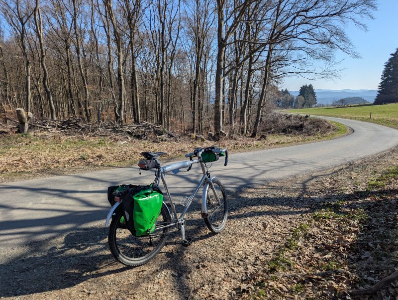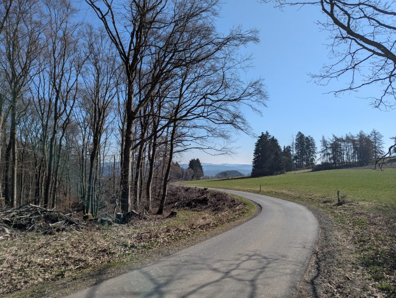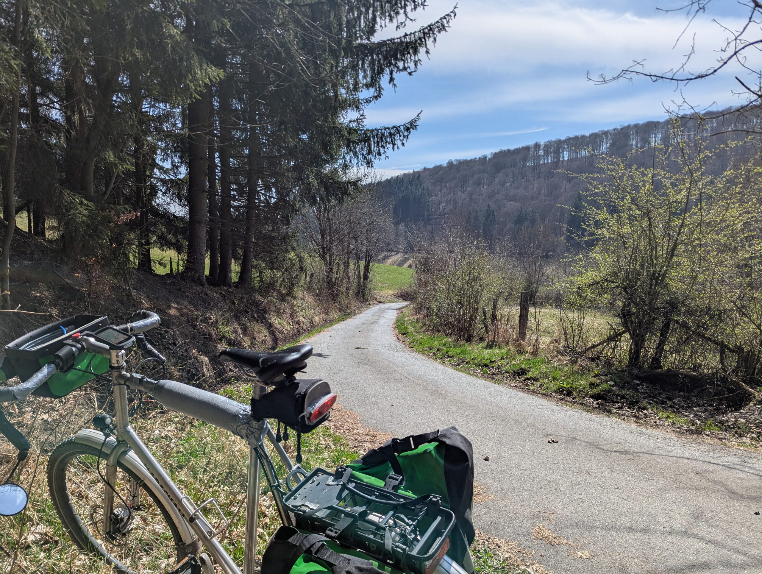 Ein halbes Jahr Älter, aber ein paar Kilogramm leichter wird die Idee der NRW Umrundung wieder aufgenommen. Nach einem langen oft regnerischen Winter mit kaltem Februar beginnt der März mit einer Hochdruckbrücke. Die Nächte sind noch frostig, aber am Tage geht es mit ein wenig an und ausziehen schon mit dem Rad auch bergauf und bergab. Das ist für die nächsten Etappen an NRWs Südostrand auch notwendig.
