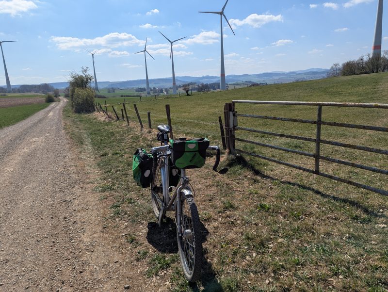 Die Winterkondition stammt im Wesentlichen von der Vorbereitung auf zwei 10K Volksläufen und ist nicht radspezifisch. Dafür gibt es ein neues Gravel Bike (Carver Street 110 GRX), weil es meinem Rohloff Rennrad weiterhin bei NatürlichRad besser gefällt als im Keller in Kunidorf. Allerdings stellt sich im Laufe der 5 Tourentage heraus, dass es nicht alle, aber doch sehr viele Schrauben locker hatte.