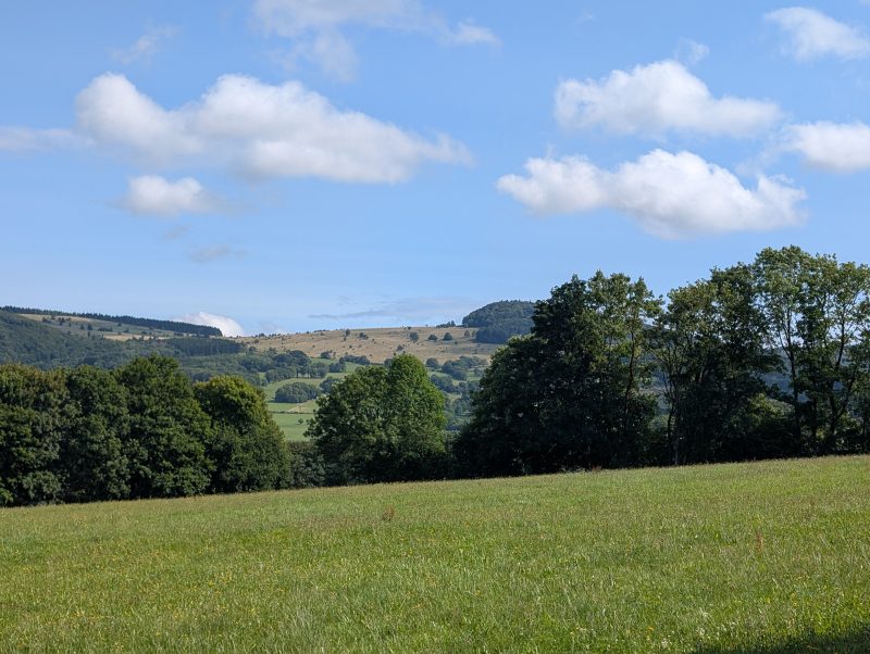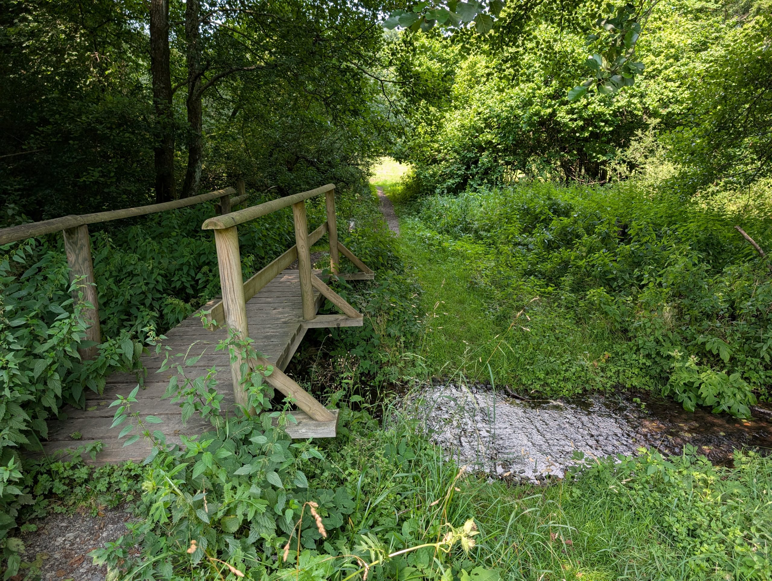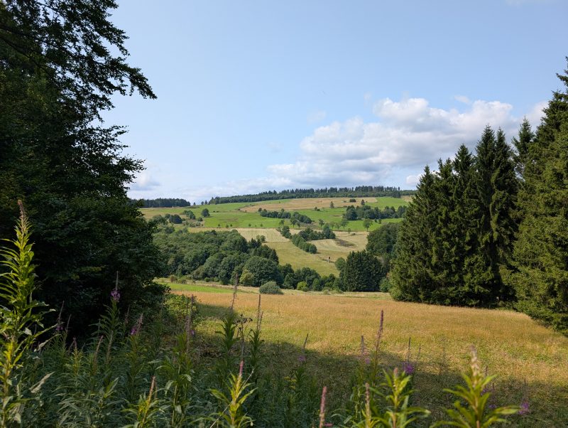 Am zweiten Tag scheint die Sonne und nach längerem Schlafen als üblich geht es auf die längere Talrunde. Auf der Westseite bergab nach Melperts, an der Ostseite bergauf bis zur Ulsterbrücke, am Hang entlang bis zur 700 Meter Höhenlinie und dann auf der westlichen Talseite zurück. Allerdings ist der Bäckerlauf jetzt ein Morgenlauf. Aber egal.