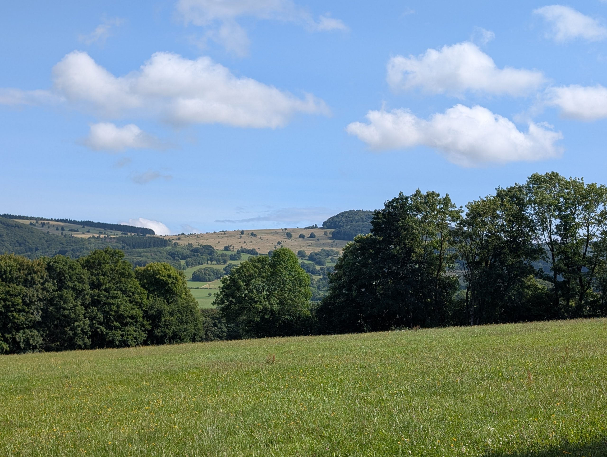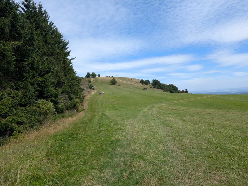 Vorbei an Zahnsberg, Warzenberg und Rauschberg führt der Weg stetig ansteigend über Wiesenwege nach Schwarzenborn.