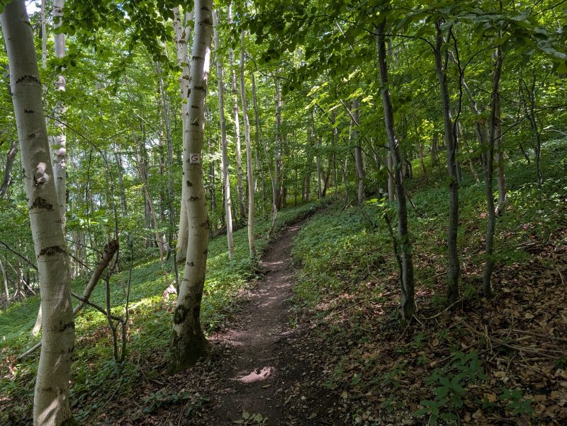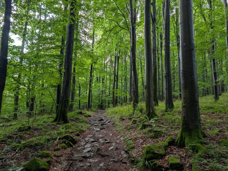 Es geht durch den Wald auf verschiedenen Wegformen. Den ab Kilometer 10 wie gewohnt schmerzenden Füßen ist es relativ egal, aber auf den Pfaden warten hungrige Zecken, von denen eine es schafft, sich unter der Socke zu verstecken und erst des Abends beim Bohren erwischt zu werden.