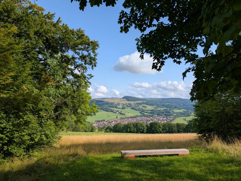 Vor Hersfeld geht es noch mal hoch über teils bewaldete Hügel, teils mit Blick ins Fuldatal. Bad Hersfeld ist dann nicht so toll, jedenfalls aus Sicht des Autoverkehr meidenden Radlers.