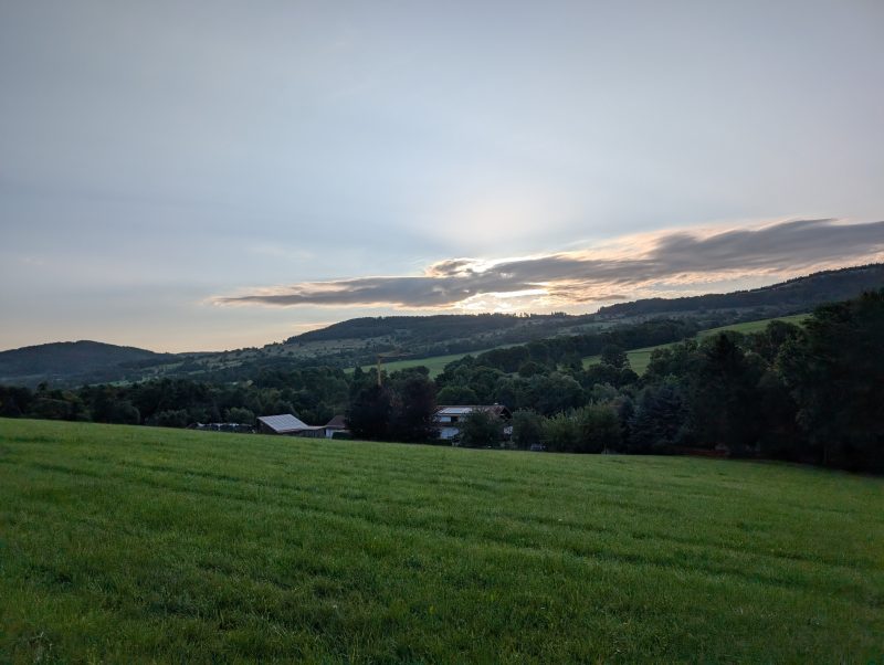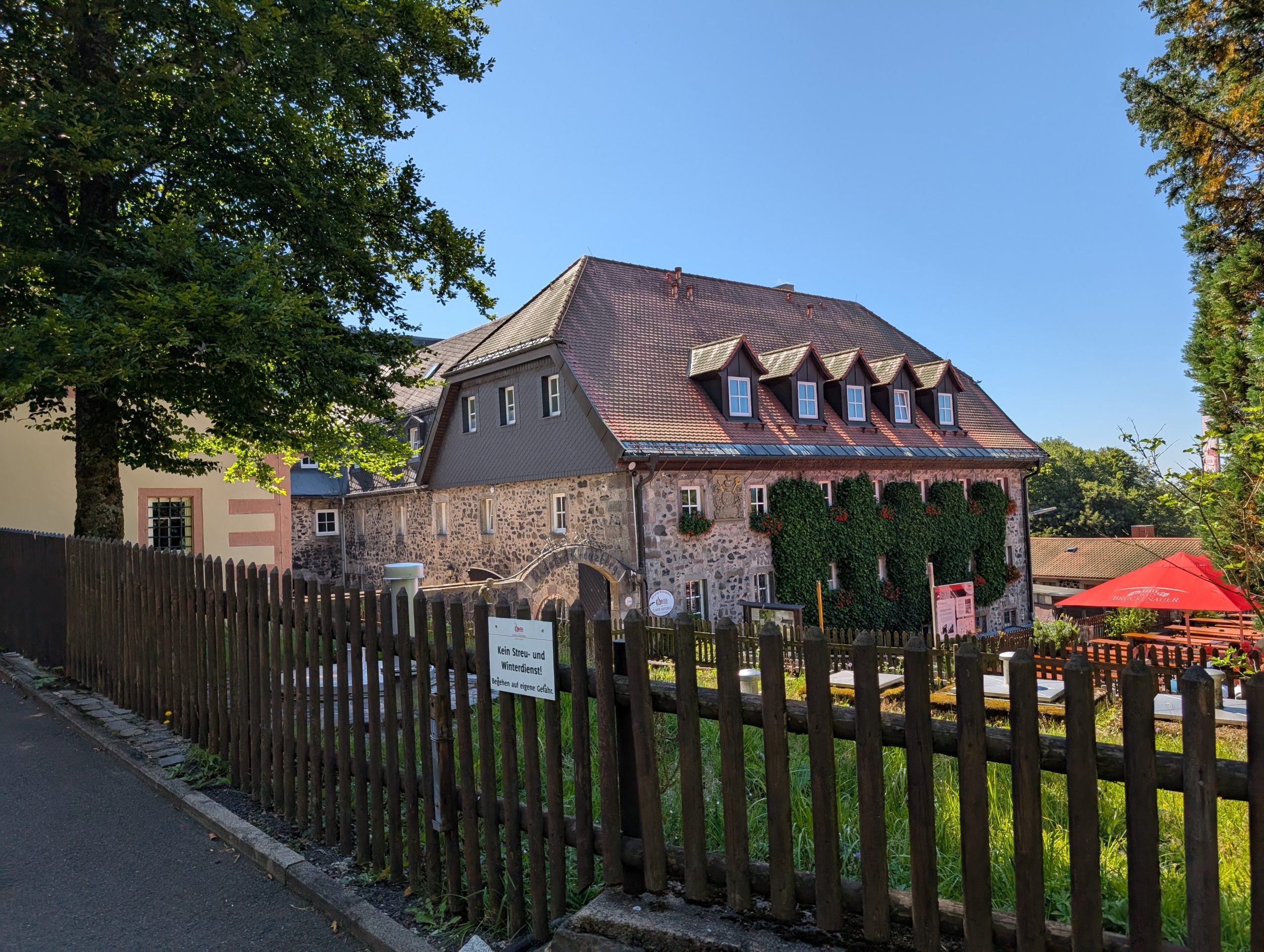 Auch wird die übliche Morgenroutine durch Reinigungszeit der singulären Sanitäreinrichtung von 5:30 bis 7:30 empfindlich gestört. Die Umgebung ist schon eher bergig statt hügelig zu nennen. So gibt es einen um 6:45 gestarteten Tallauf rund um Wüstensachsen, der je nach Tagesform aus dem Angebot mit 5, 9 oder 11 Kilometern gewählt werden kann.
