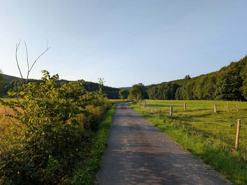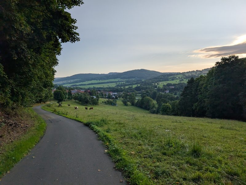 Eine nicht ganz autofreie Strecke abseits der Radwanderwege in hügeliger Mittelgebirgslandschaft. War ein schöner Radtag.