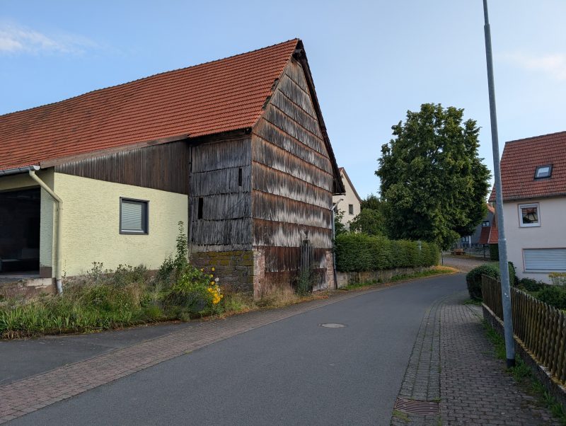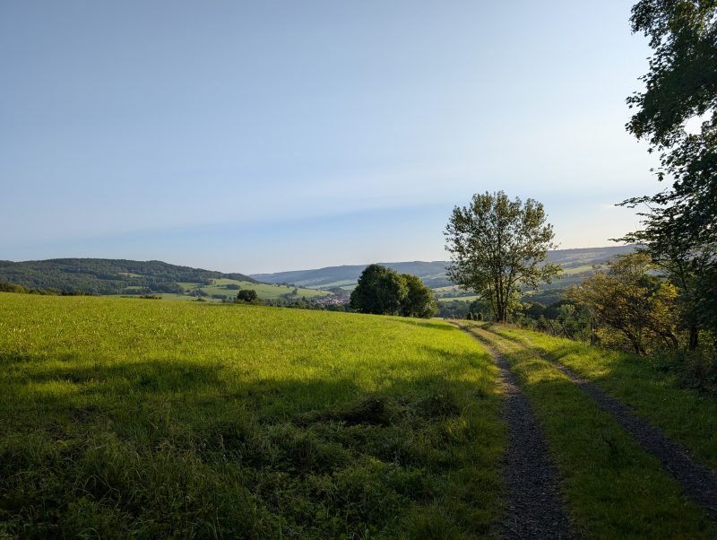 Die Radtour ist nach der langen Lauf- und Wanderung eine echte Erhohlung. Ja, bis auf die 1100 Höhenmeter, die Anstiege ziehen sich bis hoch auf den Eisenberg. Dazwischen liegt Bad Hersfeld und das liegt an der Fulda, die hier auf etwa 190 Meter hinanfließt. Zuletzt habe ich bei der Tourenplanung unbedingt die Eisenbergstraße vermeiden wollen, so ging es dann auf dem letzten Kilometer noch über einen zugewachsenen Wanderpfad. Da hat dann am Ende des Tages auf die Radtour ausreichend Trainingspunkte geliefert.
