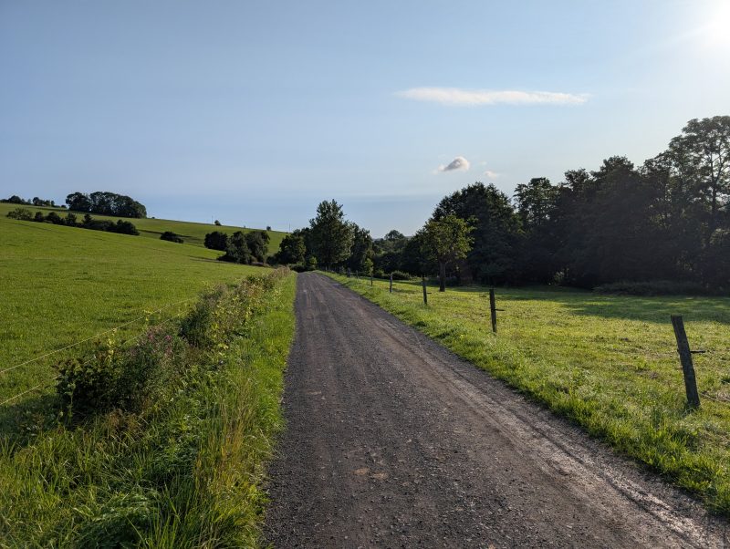 Am fünften Tag war es Zeit für eine Abkürzung. Also die 11 Kilometerstrecke ohne die Runde talabwärts nach Melperts. Fühlt sich als passender Kompromiss an. Ankunft passend zur Öffnung der Brötchenausgabe um acht.