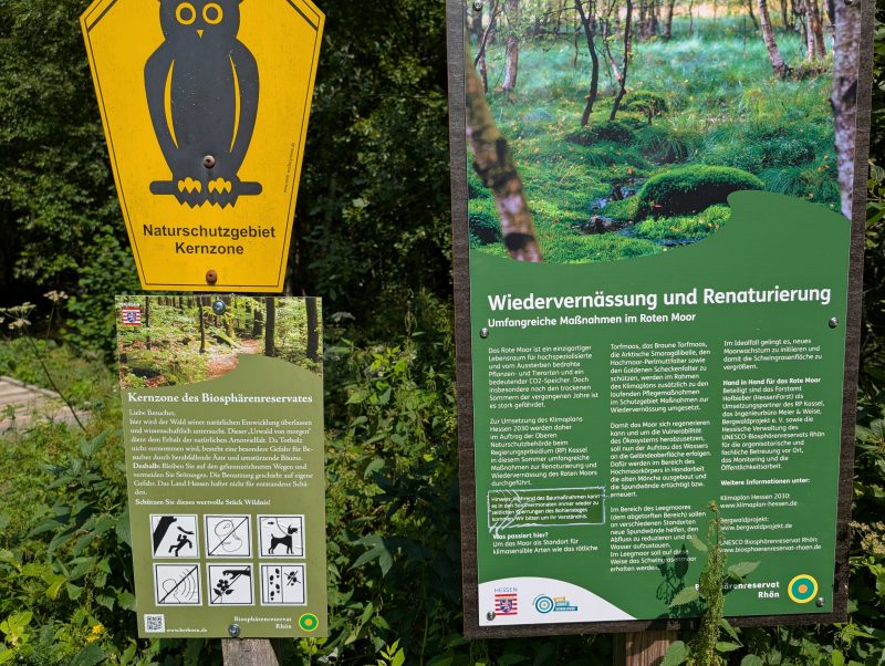 Diese Tour besteht aus 3 verschiedenen Abschnitten. Zuerst machen wir eine Wanderung durch das NSG “Schwarzes Moor”. Danach gibt es eine kleine Joggingrunde vom Wanderparkplatz am Schwarzen Moor aus. Dabei folgen wir zuerst dem Buchaniaweg bis wir auf dem Rhönrundeweg Nr. 1 stoßen. Mit ihm geht es dann zurück zum Wanderparkplatz. Anschließend fährt Kunigunde mit dem Auto wieder zum Campingplatz und Kunibert läuft über die Höhen zum Campingplatz zurück. Er folgt dabei über weite Strecken der Höchrhöner Ostvariante und dem Buchoniaweg, der ihn zurück nach Wüstensachsen bringt.