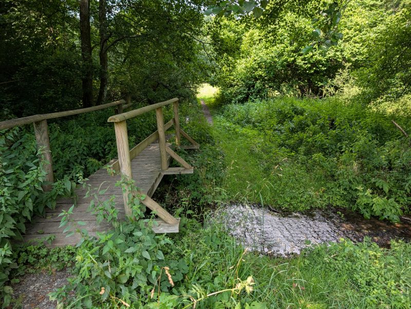 Auch bei der Jossabrücke, die beim Verlassen des Talradweges der Überquerung der Sudentenstraße K891 und des Anstiegs zum Hengstberg (515m) verwendung findet bleibt die Jossa unsichtbar.
