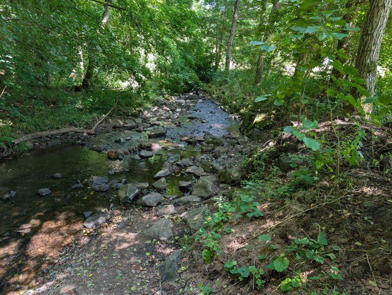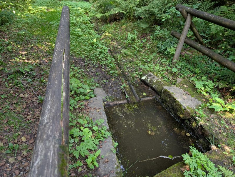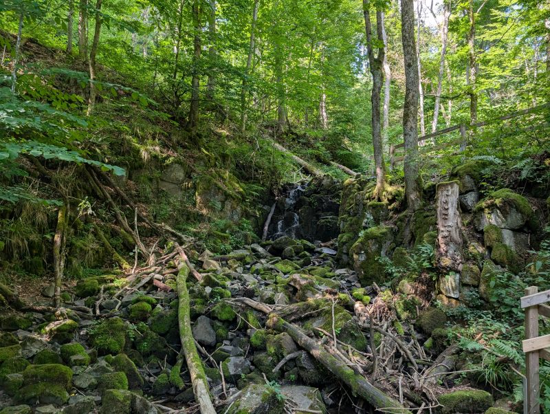 Dann tröpfelt von West der Birklerbach und der Anstieg zum nächsten Etappenziel steht an. Der Wald ist hier eher fichtig zusammengesetzt.