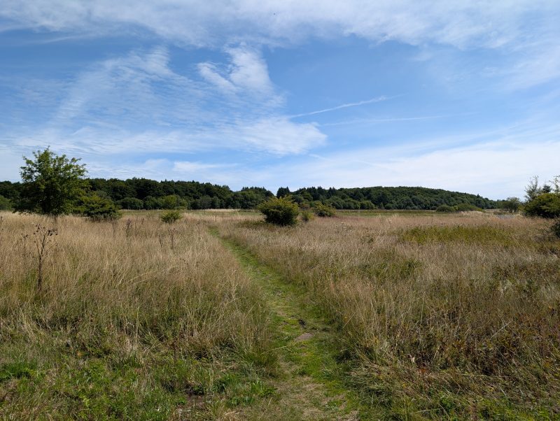 An einem Stichweg an einem eingezäunten NaBu Biotop findet sich ein Parkplatz für das Rad. Ich muss es hier abholen und zu dem auf der folgenden Wanderstrecke inspizierten direkt am Eselsweg liegenden Parkplatz am Sportplatz Bellings weiterfahren.