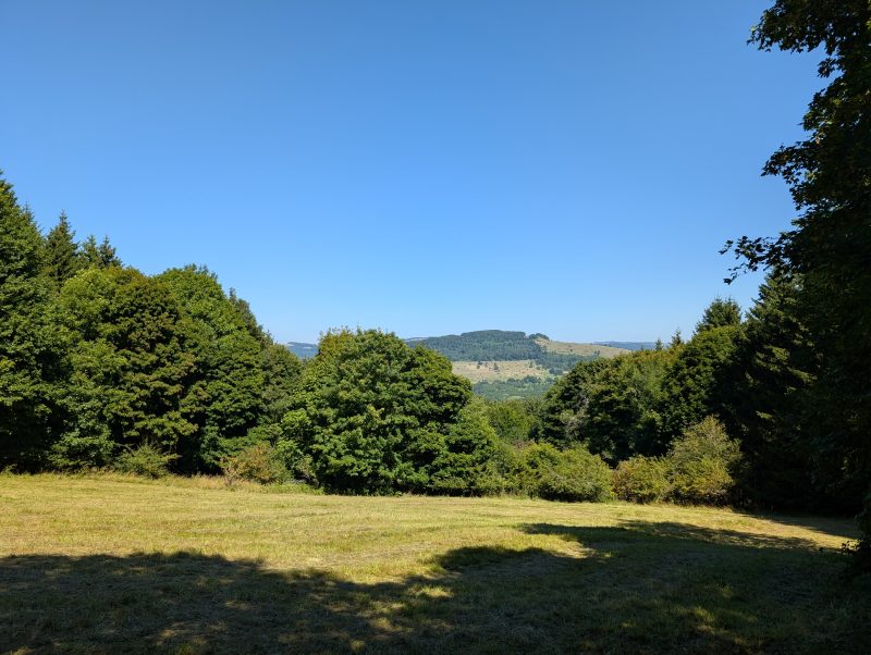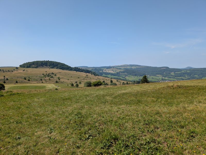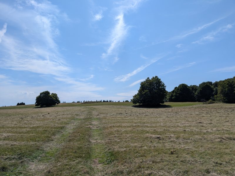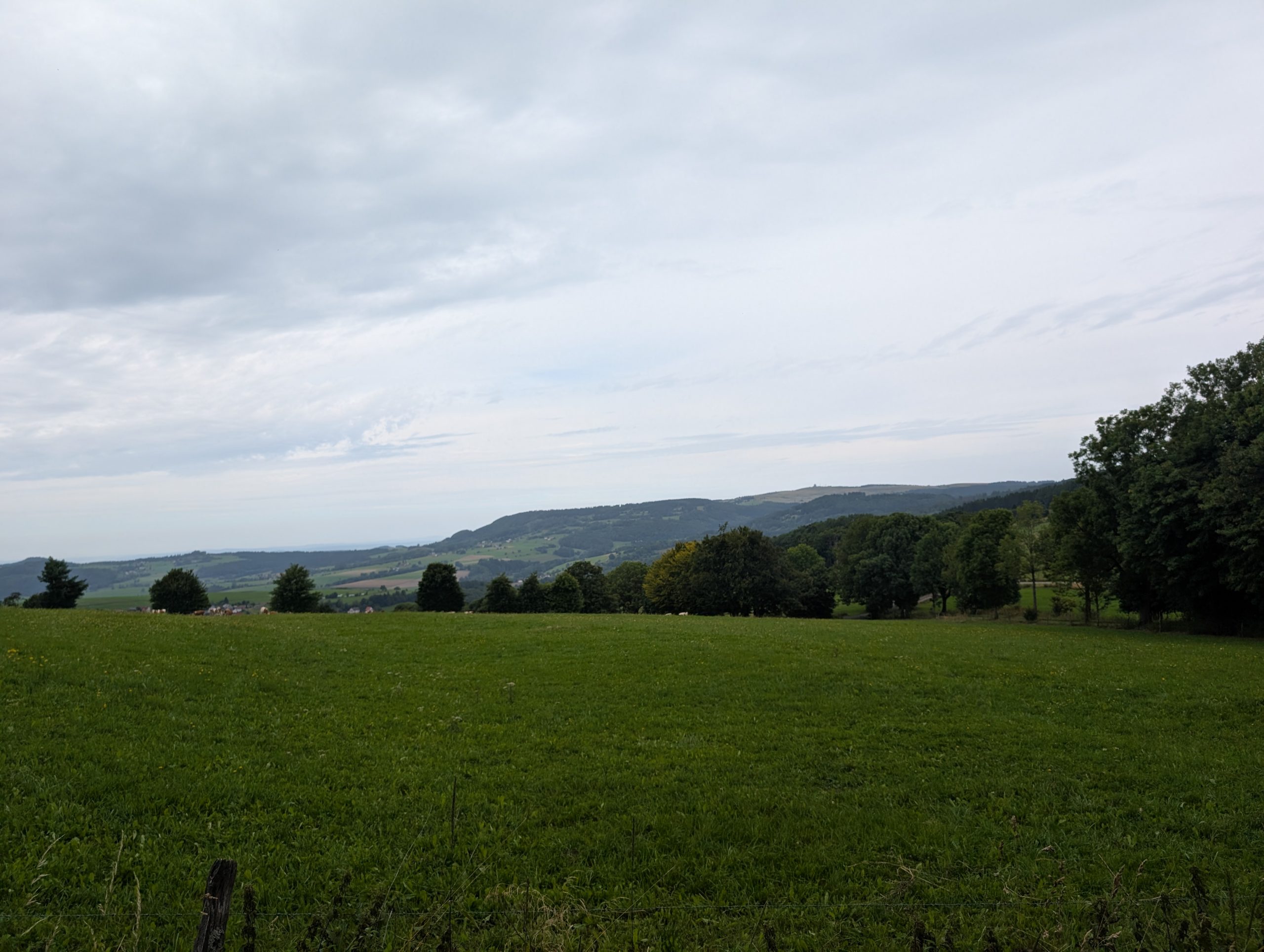 Die Wanderung wird nach 10 Kilometern wieder zäh und das Ziel wird herbeigeträumt. Der Unterwegsgenuß lässt nach und die Zehen melden Schmerz, der Gang und Tritt wird unsicher. Das linke Auge nervt mit den Fliegen im Sichtbereich. Aber es gibt wieder Aussicht.
