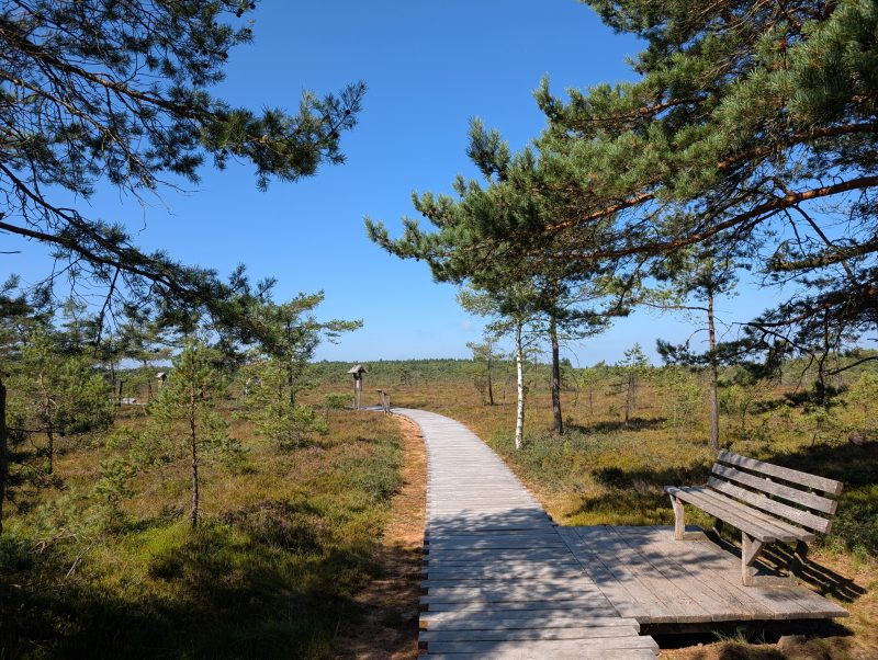 Doch dann konnte ich noch im Bild festhalten, wie eine Ruhebank von einem Rudel Jungfichten umzingelt und angegriffen wurde.