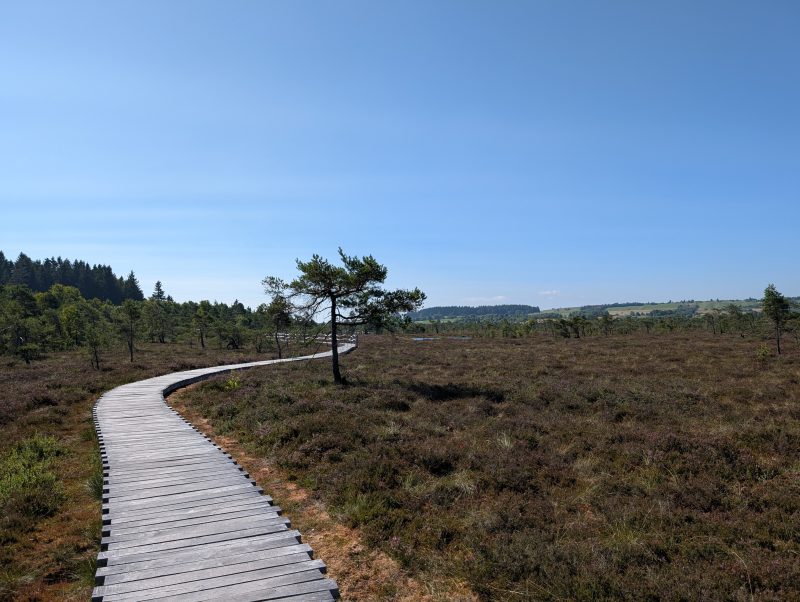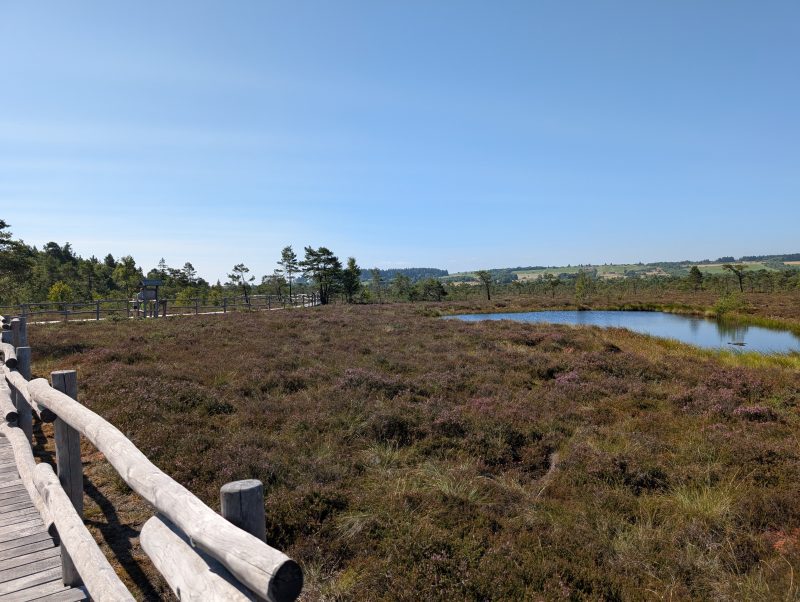Wir starten am großen Wanderparkplatz “Rotes Moor” und wandern zuerst durch das Naturschutzgebiet “Rotes Moor”. Ein großer Teil unserer heutigen Tour folgen wir der “Extratour Rotes Moor”. Am Aussichtsturm vorbei wandern wir weiter mit dem Hochrhöner Wanderweg und einem beeindruckendem Blick auf die Wasserkuppe. Dann führt uns der Weg um den Mathesberg herum durch weite Huteflächen, bis wir wieder zurück in den Wald kommen. Parallel zur Bundesstraße führt der Weg zurück durch den Wald zum Parkplatz.