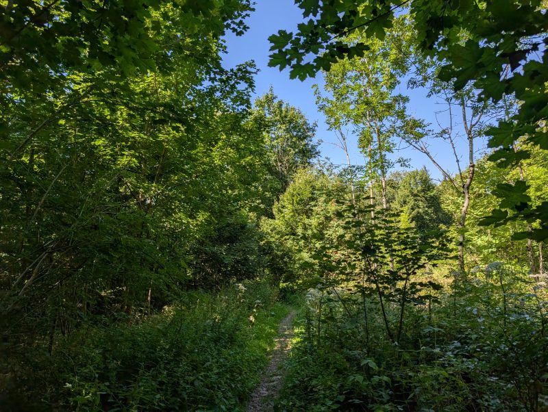 Ein letzte Anstieg und der nächste Wanderparkplatz in der Nähe der Eselshöhe wäre erreicht, wenn der letzte Zuweg zum Parkplatz nicht zugewachsen wäre. Auch ist der Parkplatz kein Parkplatz sondern eine unscheinbare Waldwegmündung mit einer nur eingeweihten bekannten wendehammerartigen Erweiterung.