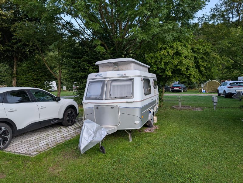 Obwohl sowohl in NRW also auch in Rheinland-Pfalz, Hessen und Thüringen noch Sommerferien sind, können wir kurzfristig für 8 Nächte einen schönen Stellplatz bekommen. Dieses Mal haben wir kein Fahrrad/Tandem dabei, da wir nur Wandertouren unternehmen wollen. Der Campingplatz hat außerdem einen sehr schönen Themenpark Wasser und man kann einen Stellplatz entweder mit Morgensonne oder mit Abendsonne auswählen.