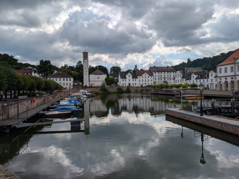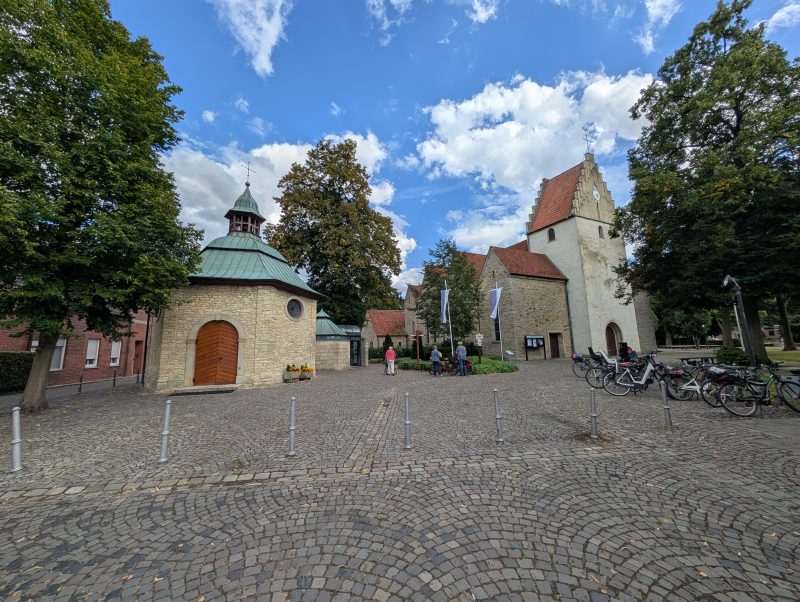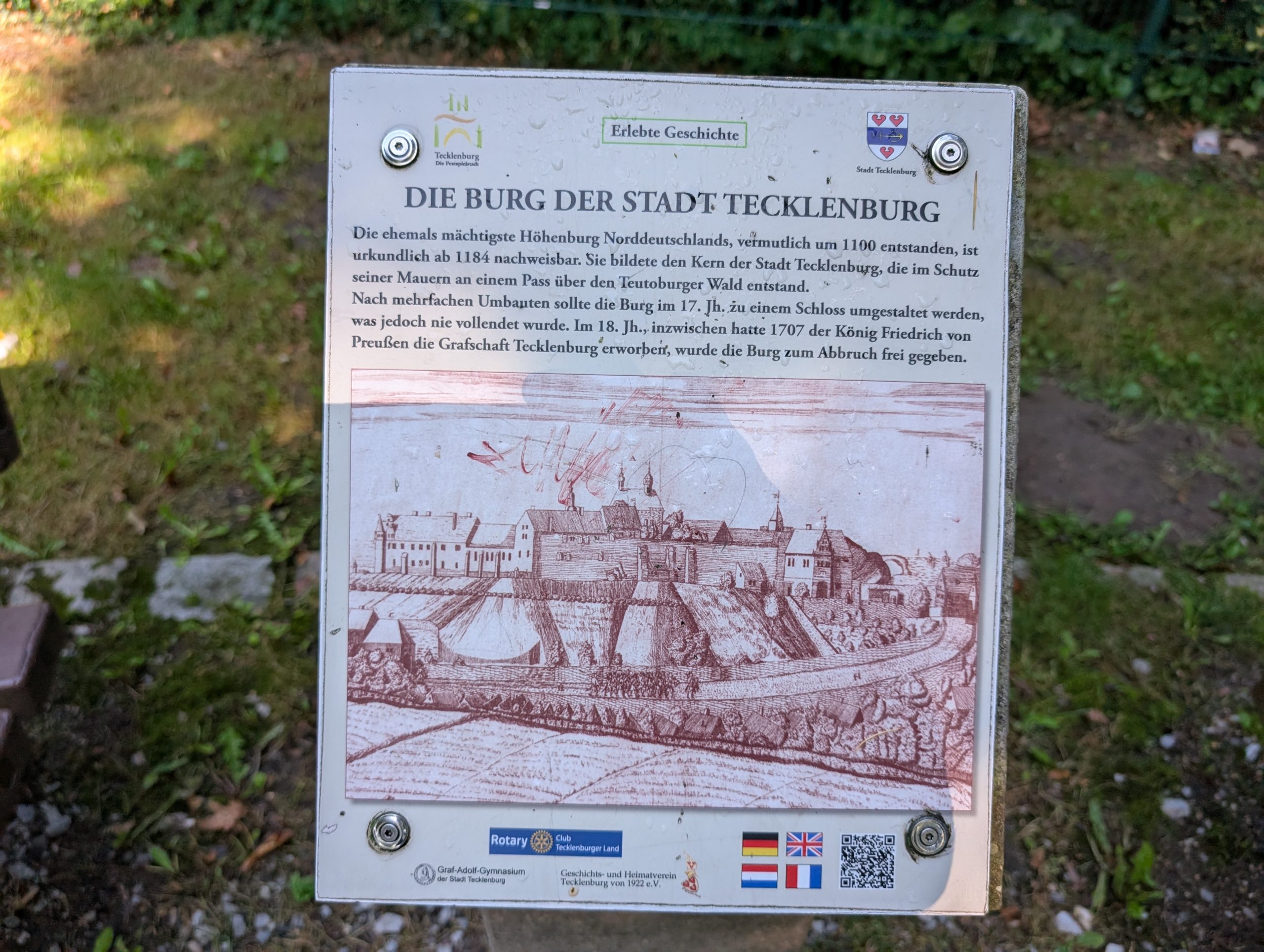 Der Campingplatz liegt bei Tecklenburg und in der Nähe der A1. Er daher wohl häufig zur Durchreise genutzt. Bei unserer späten Anreise waren die meisten besser erreichbaren Stellplätze schon alle belegt. Somit mussten wir unseren kleinen Puck auf einer ansteigenden Wiese hoch plazieren. Ohne Mover nur mit der Unterstützung zweier Mitcamper und der Schiebetechnik mit zwei Auffahrkeilen möglich. Vom Platz aus kann man gut zu Fuß in die Innenstadt von Tecklenburg gelangen.