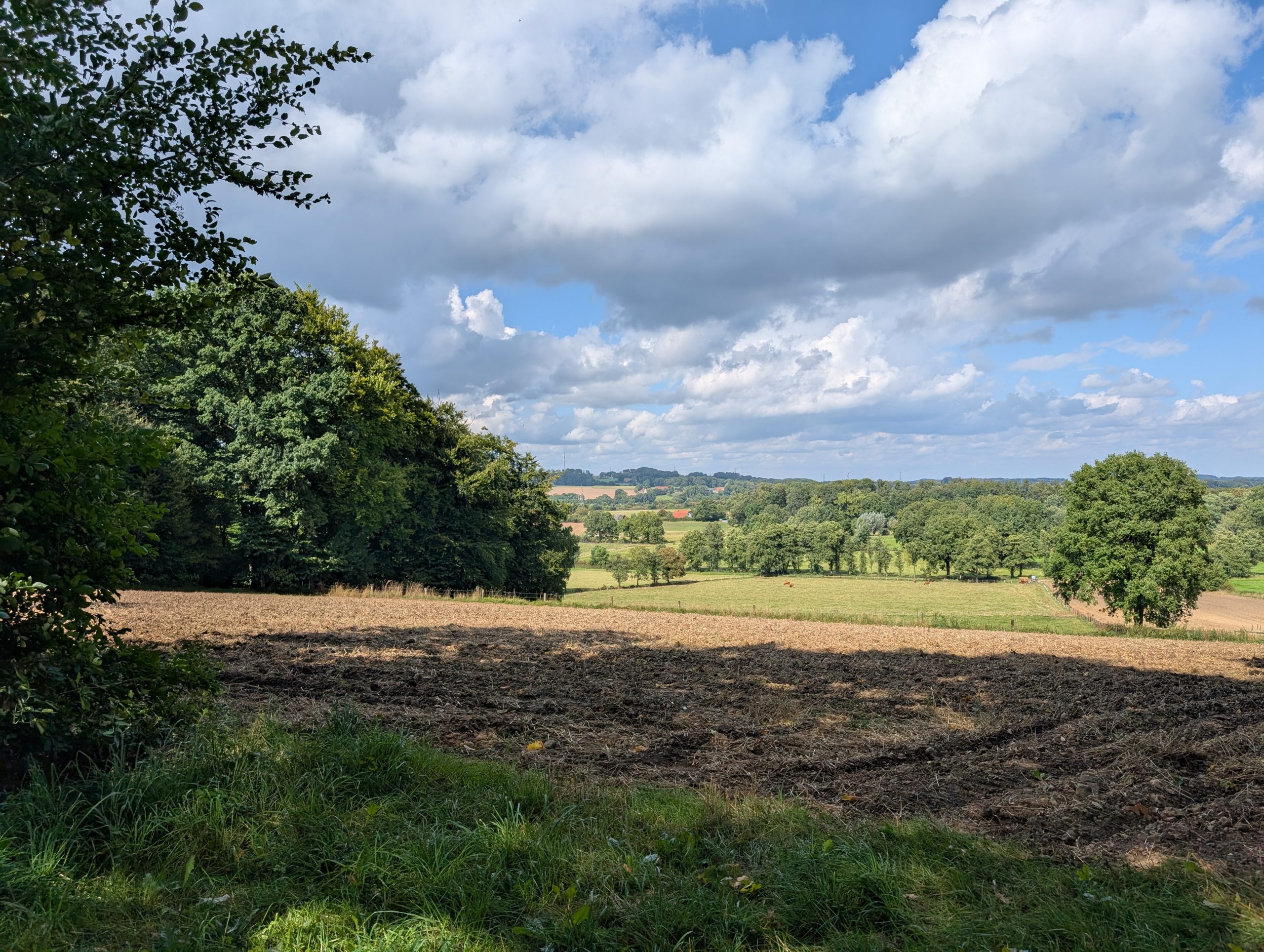 Parallel zu einem Geburtstagsbesuch ist Zeit für eine Wanderung auf Münsterländer Wirtschaftswegen. Hier ist ein X5 und ein X11 ausgeschildert. Der Naturweganteil liegt allerdings unter 10 Prozent. Eine gute Gelegenheit, die Hoka Wanderstiefel auszuprobieren. Die sind gut gedämpft, das Gehgefühl ist trotzdem nicht besonders, eher matschig und die Füße werden auf dem Asphalt doch schnell müde.