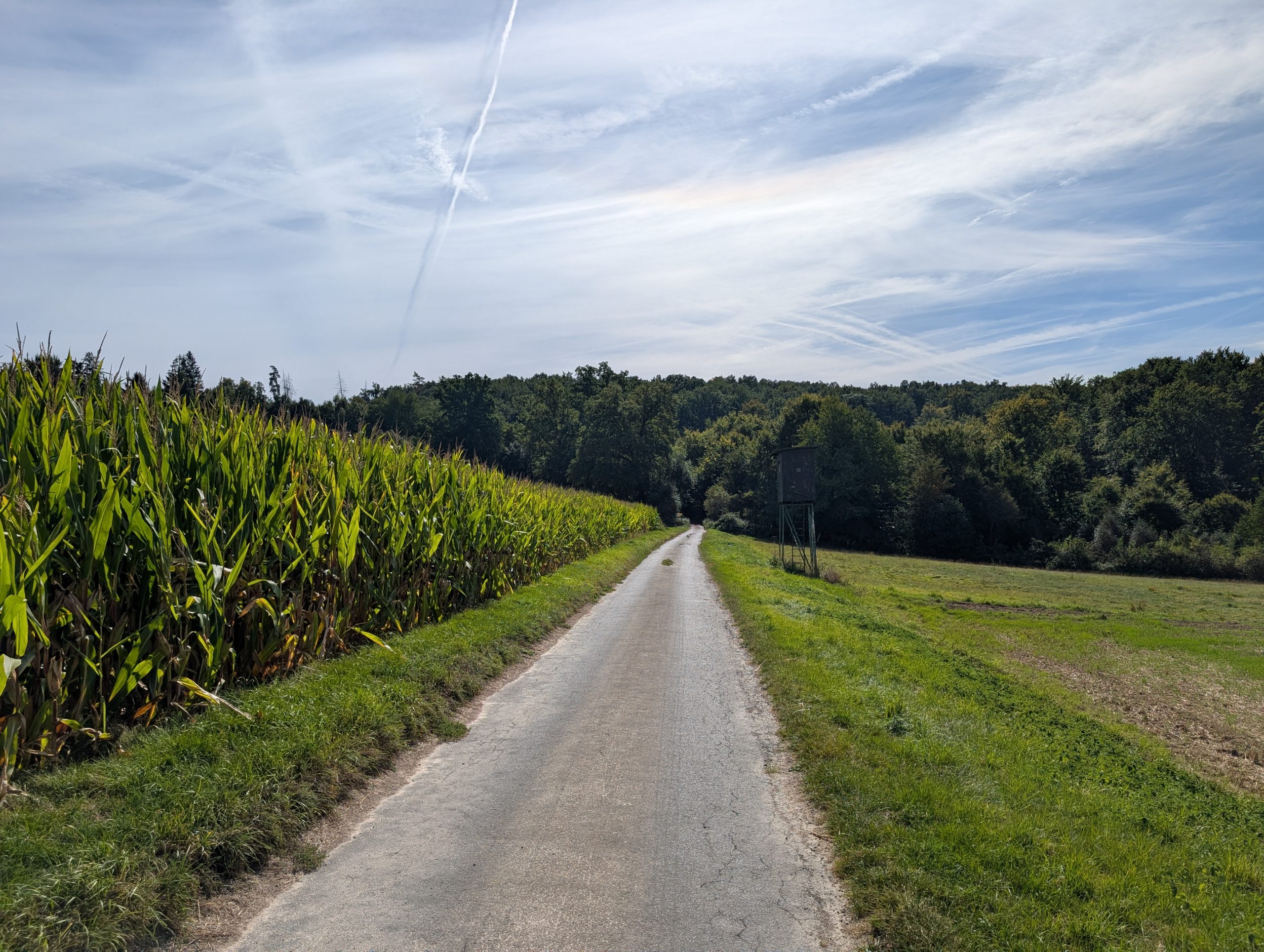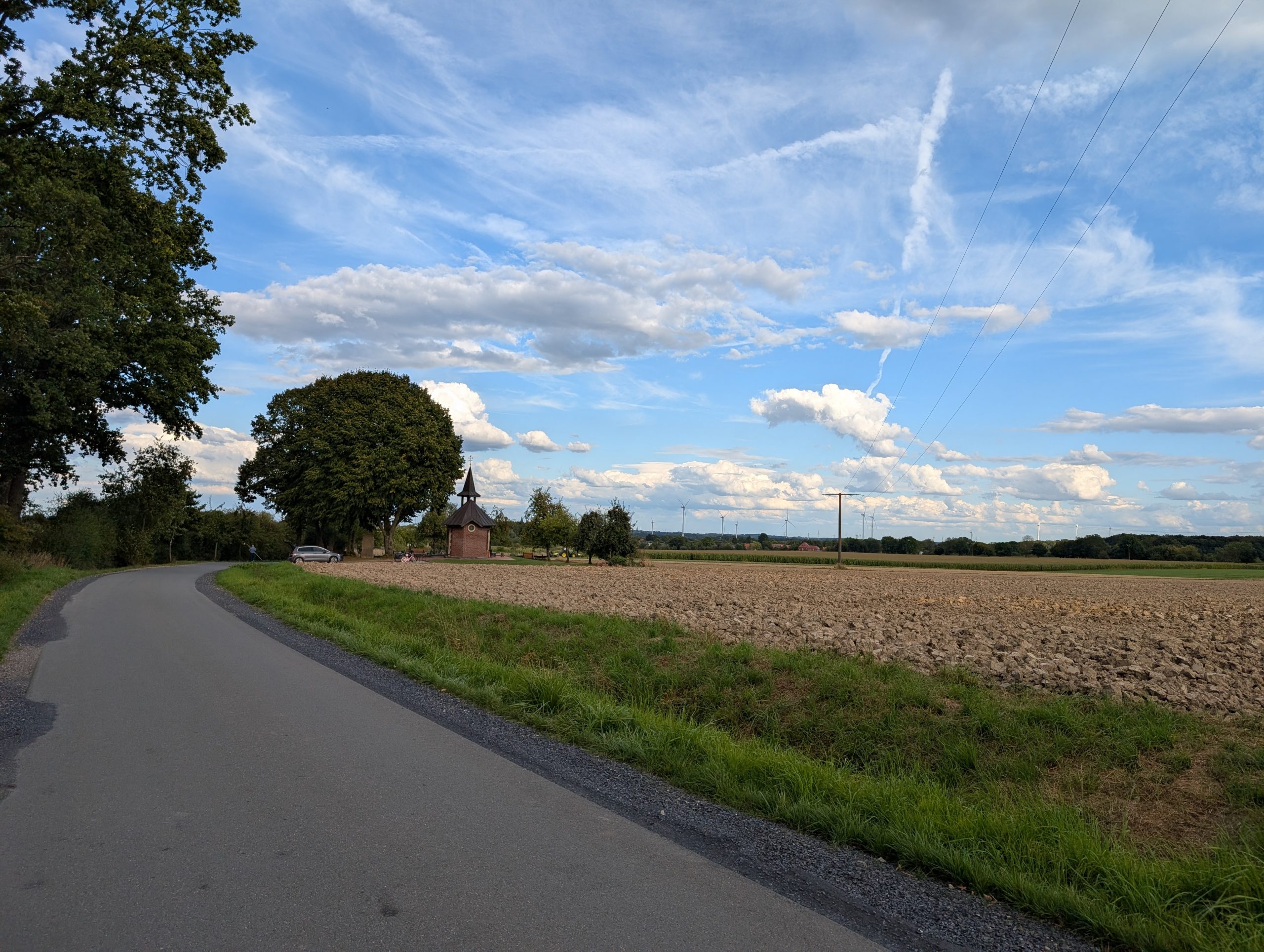 Der zweite Lauf nach Lengerich über Wirtschaftswege und Nebenstraßen, einen Radweg und die Lengericher Bürgersteige war einfacher, trotz Ansteig auf dem Rückweg und schwerer Wochenendbäckertüte im Rucksack