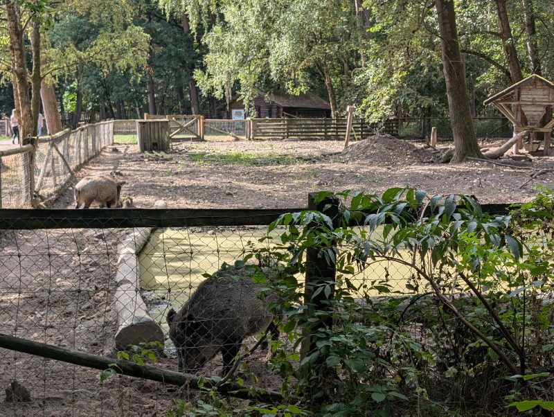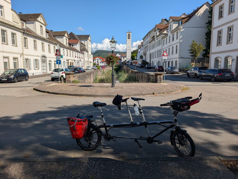 Auch am Sonntag keine Ruhe, der Bäcker im Ortskern hat ab sieben geöffnet. Das ist nur eineinhalb Kilometer vom Campingplatz entfernt, daher wird die Strecke durch eine Runde zwischen Wohngebiet und Waldrand erweitert. Es geht soger etwas wellig über sandige Hügel und schmale Gassipfade. Die vielen Richtungswechsel sorgen dann auch für zwei Abzweig Verpassungen. Der Ortskern hat noch bemerkenswert gute Geschäftsbelegung. Leider aber auch größere Glasfensterfronten zur Betrachtung des schlurfenden altergebeugten Laufstieles.