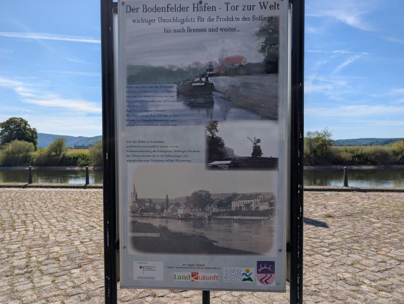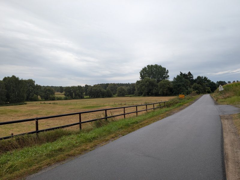 Die Laufstrecker von Heinsen ins Weser abwärts gelegene Polle ist einfach. Durchs Dorf zur Hauptstraße und auf dem Radweg parallel zur Bundesstraße nach Polle und dann mit sechs Brötchen im Rücksack wieder zurück. Nicht schön, aber einfach und gute Basis für einen Tempolauf, wenn es denn nicht im Knie so schmerlich ziehen würde.