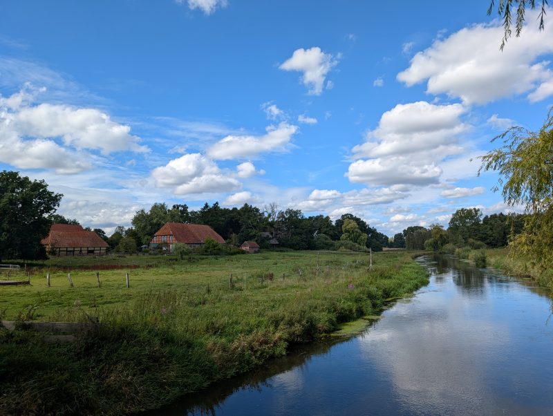 Unsere Tour führt uns dieses Mal nach Bad Beverungen. Vom Campingplatz aus fahren wir durch Waldstücke und entlang von Kartoffel- und Rübenfelder bis Barum. Von dort weiter entlang der K11 (mit Radweg) bis Sasendorf und anschließend Bad Beverungen. Nach einer kurzen Stadtbesichtiung geht es in den schönen Kurpark an der Illmenau. Mit dem “Heide-Harz-Radweg” fahren wir weiter bis zur “Klein Bünstorfer Heide”. Da wir Anfang September haben, blüht die Heide sogar noch. Danach überqueren wir wieder die Illmenau und es fahren weiter bis Tatendorf-Eppensen und dann mit Radweg entland der B4 bis Kirchweyhe und Westerweyhe.