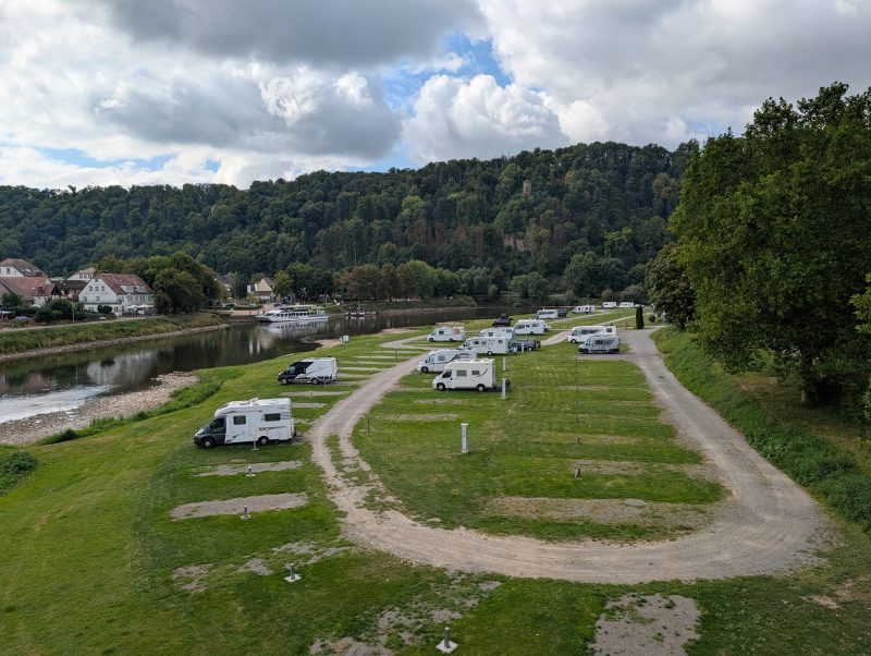 Dieser Campingplatz ist groß und liegt direkt an der Weser. Das Gelände ist sehr gepflegt und von unserem Stellplatz aus hatten wir einen schönen Blick auf den Fluss.