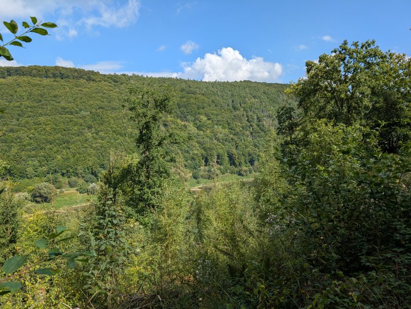 Diese Wanderung geht wieder direkt vom Platz aus. Dabei entdecken wir, dass es sich um einen vom Ort ausgeschilderten “Historischen Wanderweg” (Beschilderung HW) handelt mit vielen Info-Tafeln. Ein schöner Weg der auf dem Rückweg bergab viele schöne Aussichten bietet. Nur der Pfad durch den Wald auf dem Hinweg ist ziemlich zugewachsen.