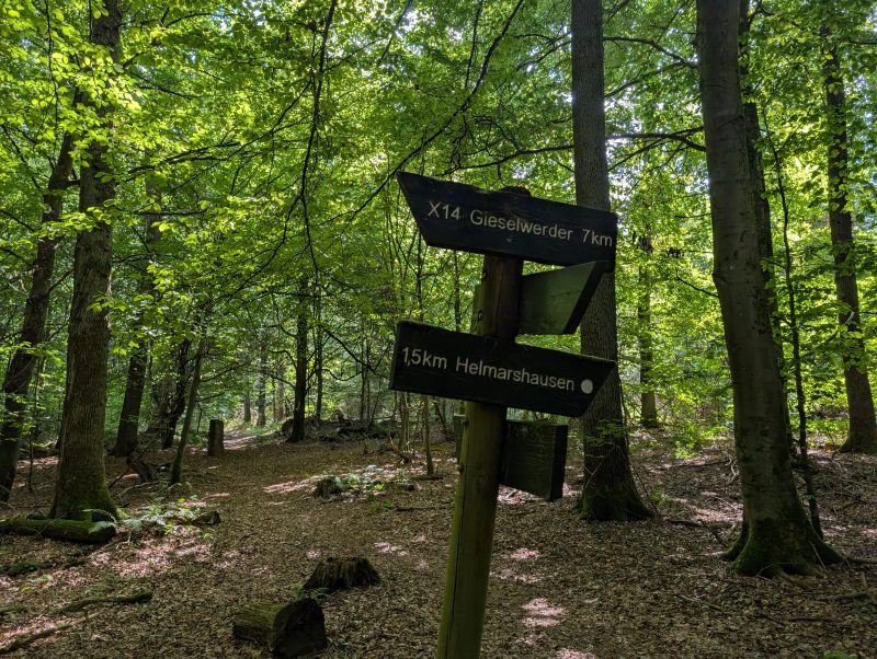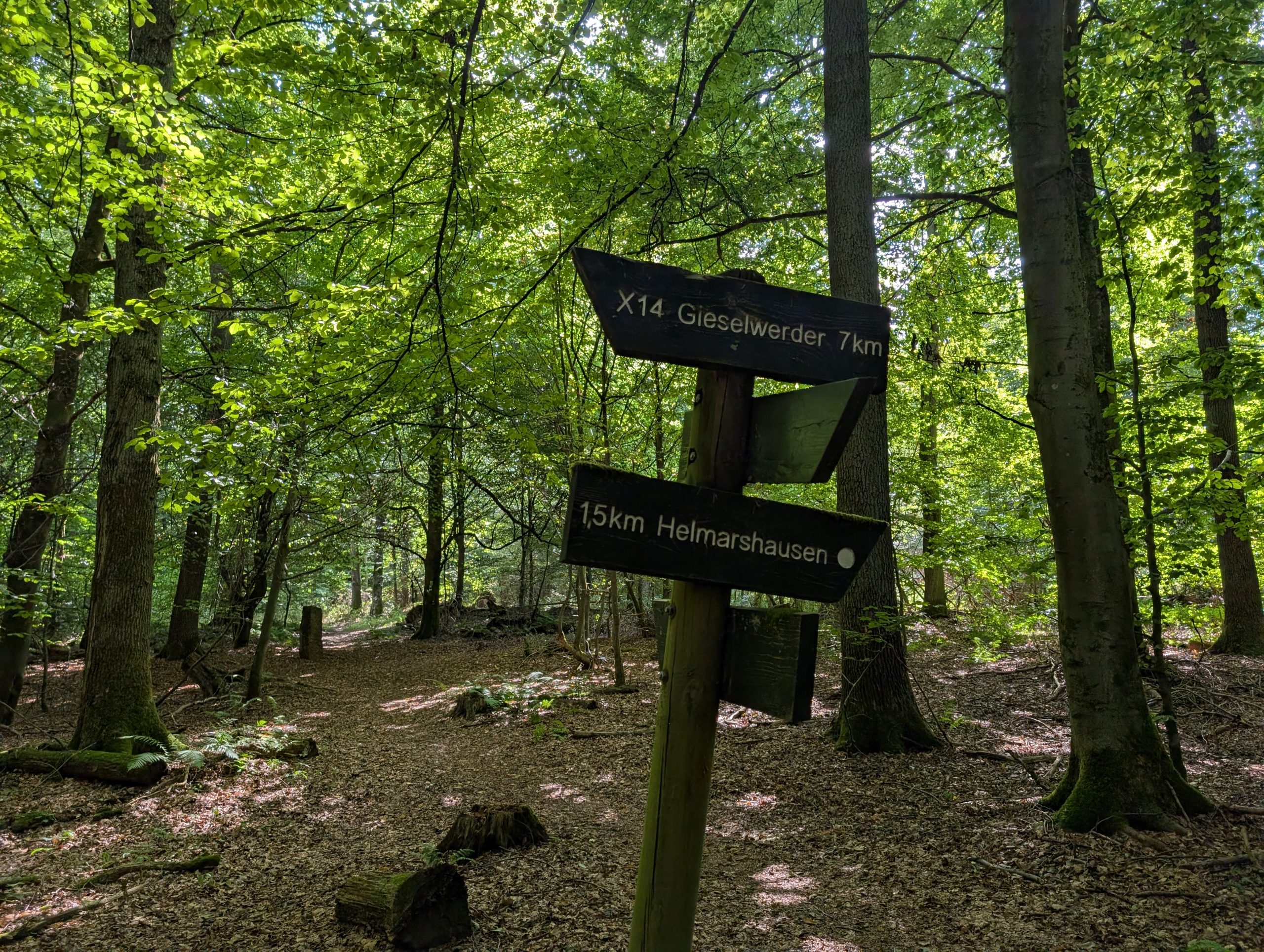 Nach den vielen Tandemtouren soll es mal wieder eine Wanderung geben. Vom Platz aus geht es zuerst durch Bad Karlshafen. Mit dem Märchenland- und Hugenottenweg wandern wir weiter am “Dreiländerblick” vorbei. Weiter führt uns der Weg durch den Wald am Hang entlang parallel zur Weser und vorbei an einem alten Steinbruch bis zur Gottsbürener Straße. Ab hier folgen wir dem Weg X 14 in Richtung Helmarshausen. Dann wandern wir weiter am Hang entlang durch den Wald parallel zur Diemel bis Bad Karlshafen.