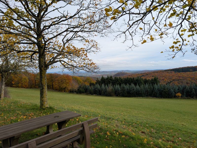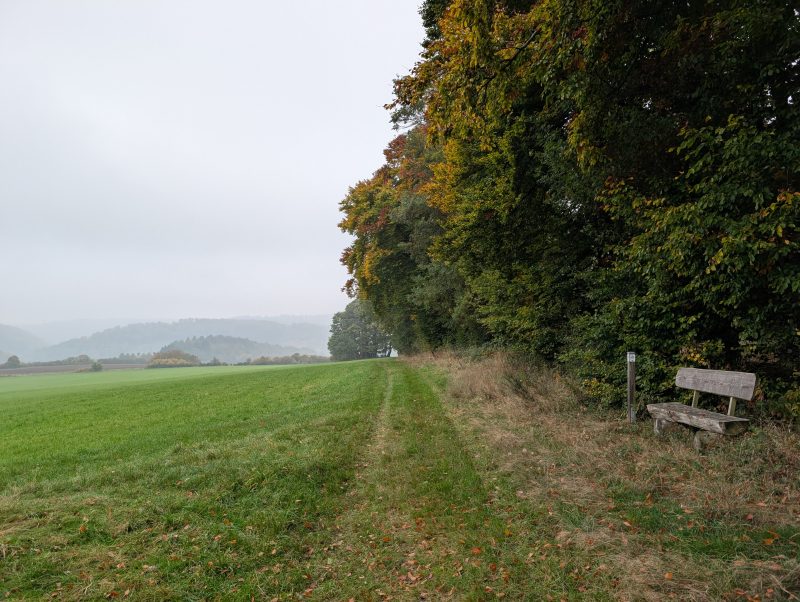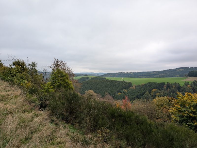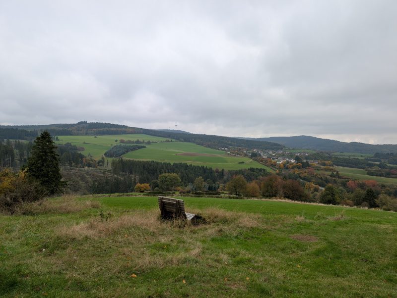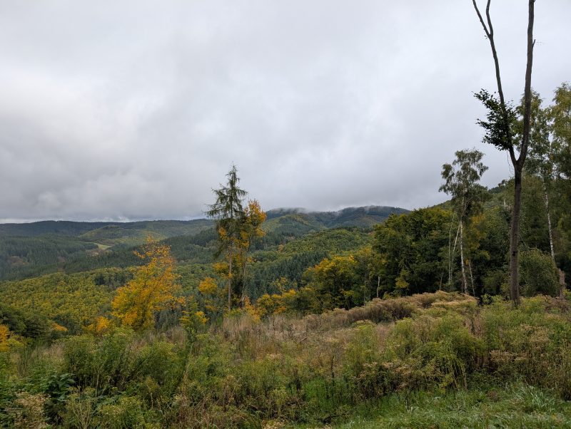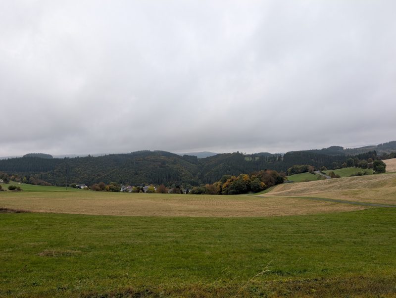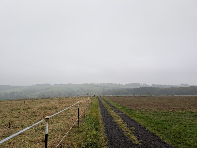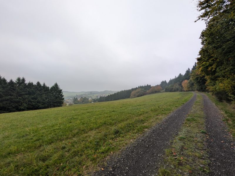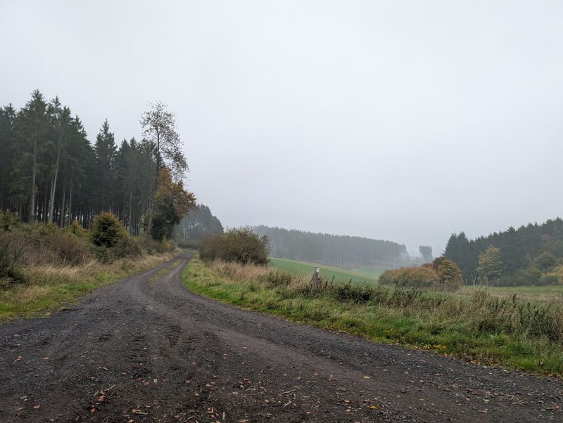 Der Samstag sollte nach Nebelauflösung sonnig werden. Leider gefiel es dem Nebel in der Eifel und es suppte während der gesamten Radfahrt, als die die dritte Etappe des Eifelsteiges absolviert wurde. Nach der verkürzten vierten Etappe am Vortag sollte die dritte die entstandene Lücke füllen. Zur Erleichterung wurden die 28 Kilometer mit dem Rad absolviert. Wegen der über 500 Höhenmeter gab es auch ein paar Schiebeabschnitte und die Durchschnittsgeschwindigkeit lag nur knapp über der Wanderpace. Für eine Wendepause war es zu nass und zu kalt.