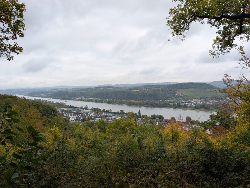 Es beginnt mit einem nieseligen Nebel Oktobertag und endet mit Sonnenstrahlen. Die Rheinetappe beginnt an der Autobahn am Mitfahrerparkplatz und für die ersten 3 Kilometer liefert die Bahn auch die Geräuschkulisse. Der Weg nach Bad Breisig tendiert bergab, aber in Waldorf wird einmal das Tal gewechselt und weil es so schön war auf Wallers gleich noch mal. Der Frankenbach muss auch noch überquert werden, weil die andere Hangseite dann eine Kesselbergzunge bis fast zum Rheintal bietet. Inzwischen ist im Rheintal dann auch nicht nur Nebel sondern auch Wasser zu sehen. Der bisherige Schlurflauf hat besonders die Füße und den Kopf ermüdet. Da der Absteig nicht wie geplant im Kurpark endet, wird auf die Rheinuferbesichtigung verzichtet und der Weg zurück zu den Höhen über Waldorf gesucht. Dabei geht es hinauf durch Oberbreisig, so werden die zwei Seitentälerquerungen vermieden. In den Laufschuhen leiden die Zehen vor allen Dingen bergab. Die Streckenlänge liegt an der Obergrenze der aktuell ohne Leiden zu bewältigenden Strecke.
