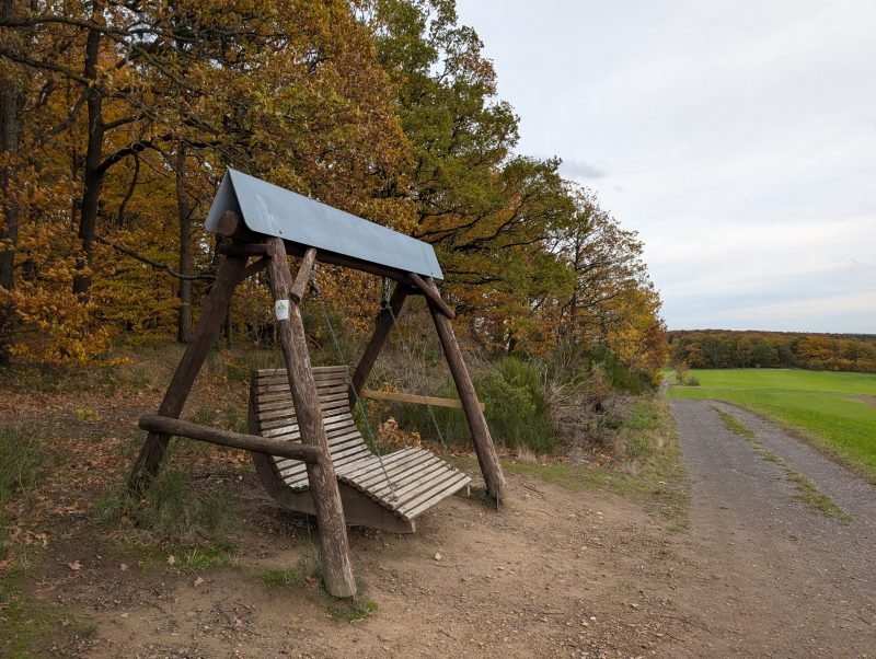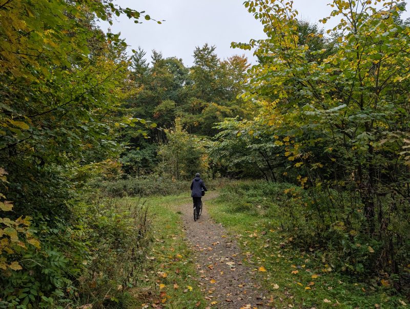 Es soll wieder eine gemeinsame Etappe werden. Dieses Mal wird aber ein Roller als Unterstützung für Kunigunde mitgenommen. Bergab kann Kunigunde auf dem Roller fahren, wenn der Weg nicht zu grobschotterig ist. Bergauf muss der Roller von Kunibert geschoben werden. Ursprünglich sollte diese Etappe 20 km umfassen. Allerdings wird sie doch verkürzt und der Rückweg dann über Kaltenborn geführt.