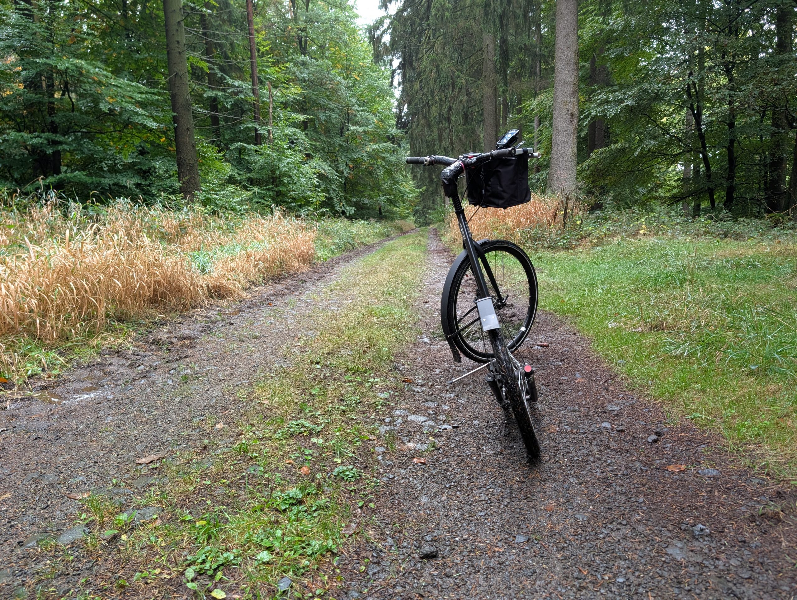 Es soll wieder eine gemeinsame Etappe werden. Dieses Mal wird aber ein Roller als Unterstützung für Kunigunde mitgenommen. Bergab kann Kunigunde auf dem Roller fahren, wenn der Weg nicht zu grobschotterig ist. Bergauf muss der Roller von Kunibert geschoben werden. Ursprünglich sollte diese Etappe 20 km umfassen. Allerdings wird sie doch verkürzt und der Rückweg dann über Kaltenborn geführt.