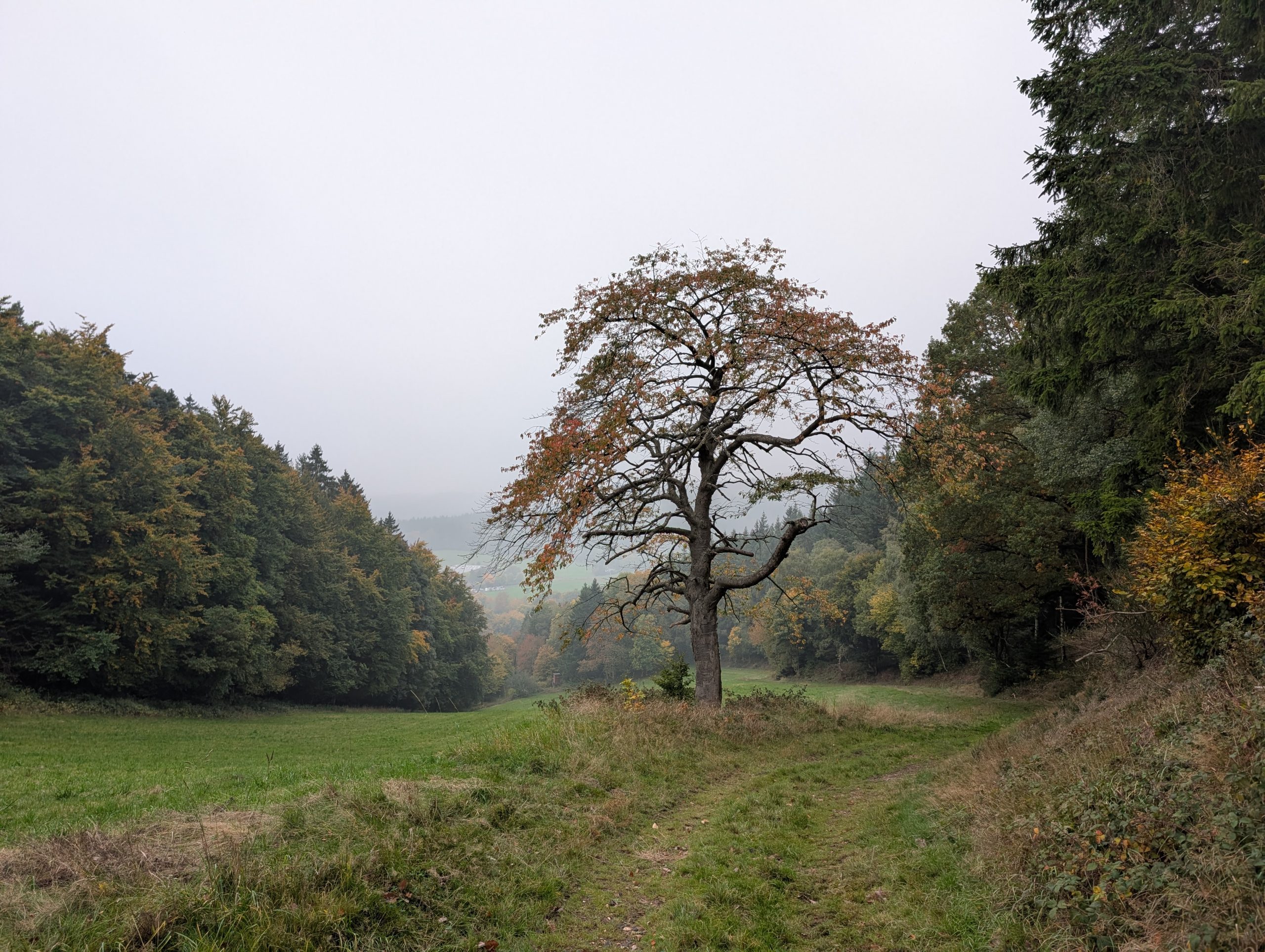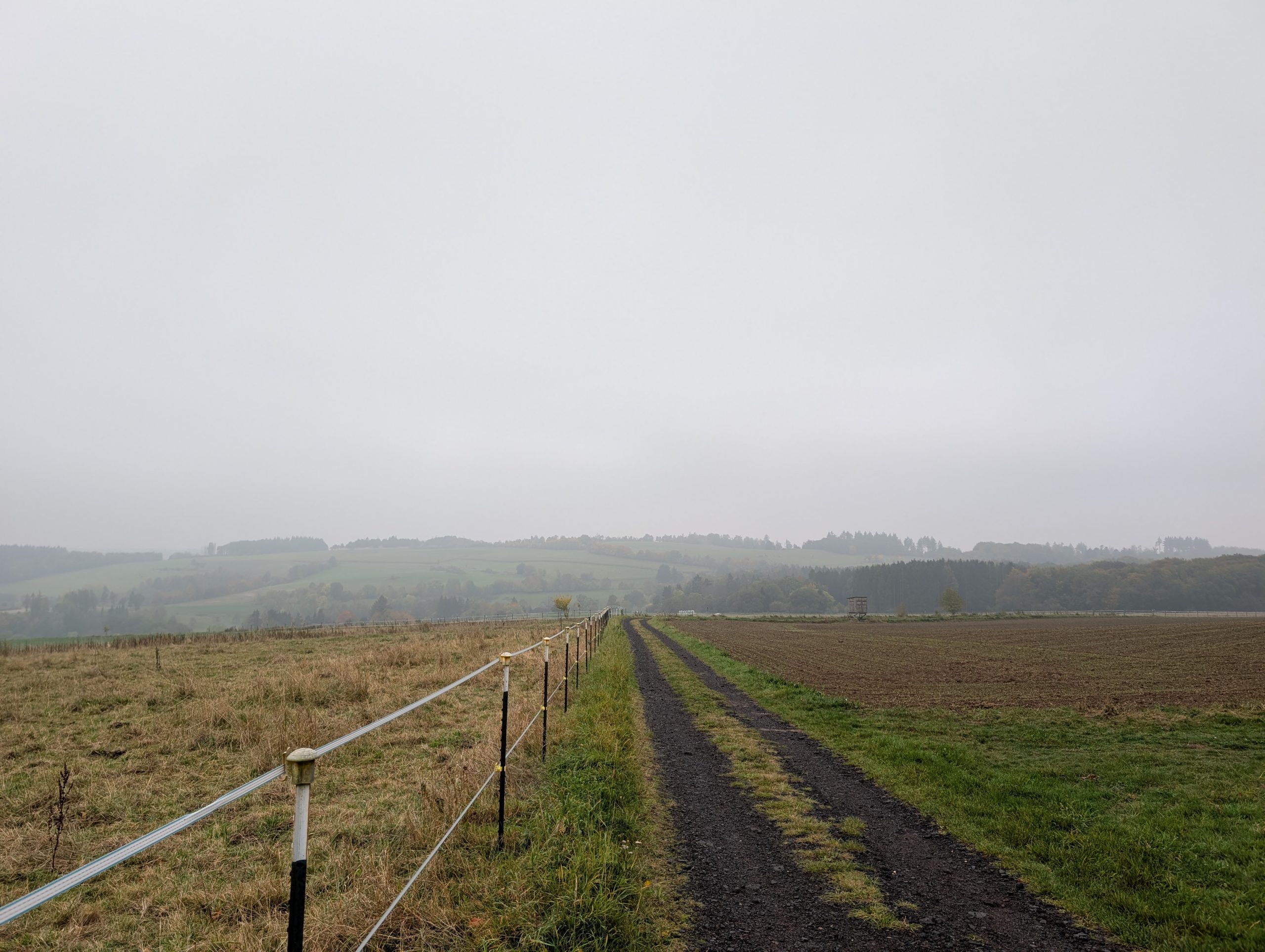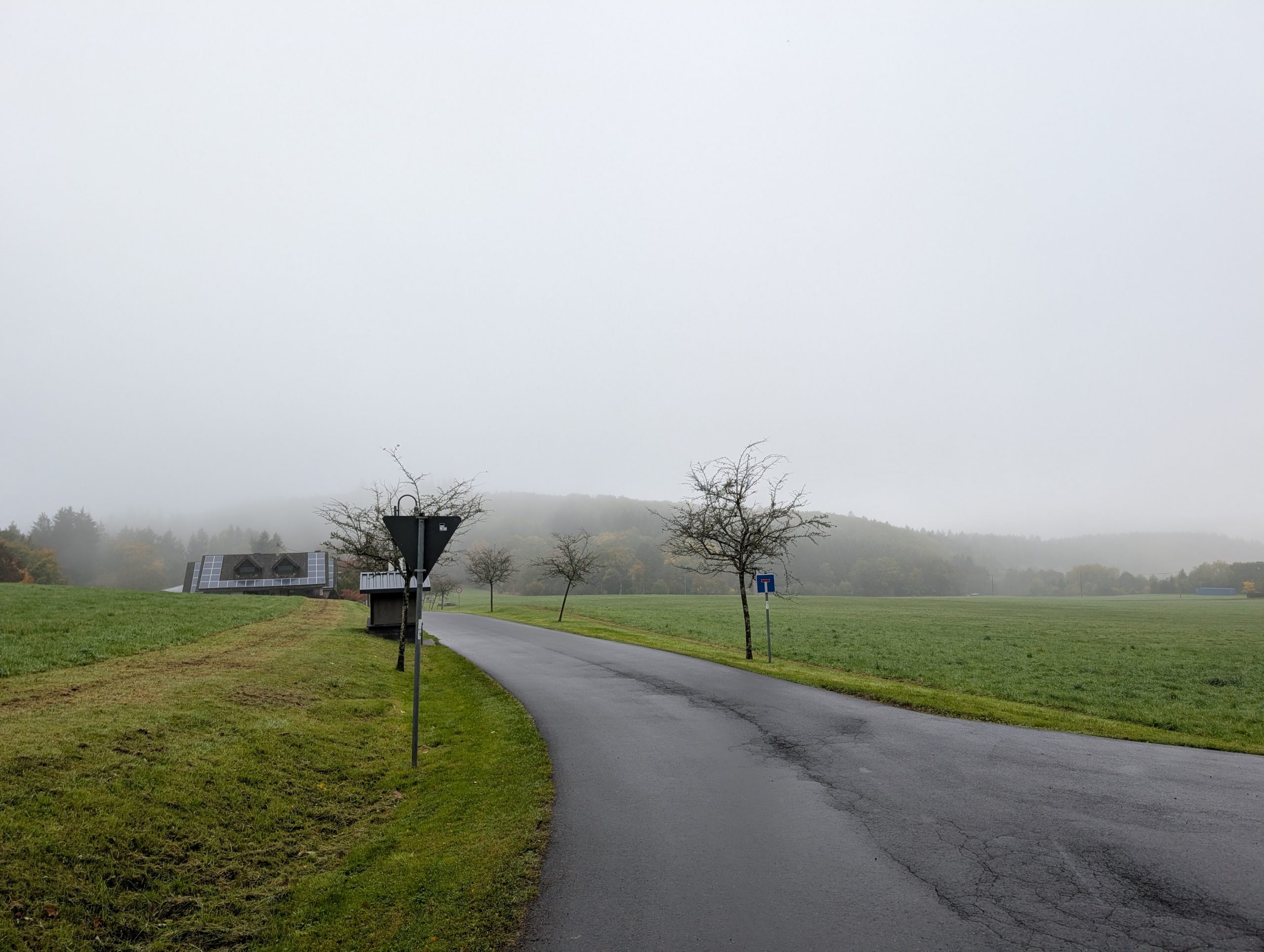 Der Samstag sollte nach Nebelauflösung sonnig werden. Leider gefiel es dem Nebel in der Eifel und es suppte während der gesamten Radfahrt, als die die dritte Etappe des Eifelsteiges absolviert wurde. Nach der verkürzten vierten Etappe am Vortag sollte die dritte die entstandene Lücke füllen. Zur Erleichterung wurden die 28 Kilometer mit dem Rad absolviert. Wegen der über 500 Höhenmeter gab es auch ein paar Schiebeabschnitte und die Durchschnittsgeschwindigkeit lag nur knapp über der Wanderpace. Für eine Wendepause war es zu nass und zu kalt.