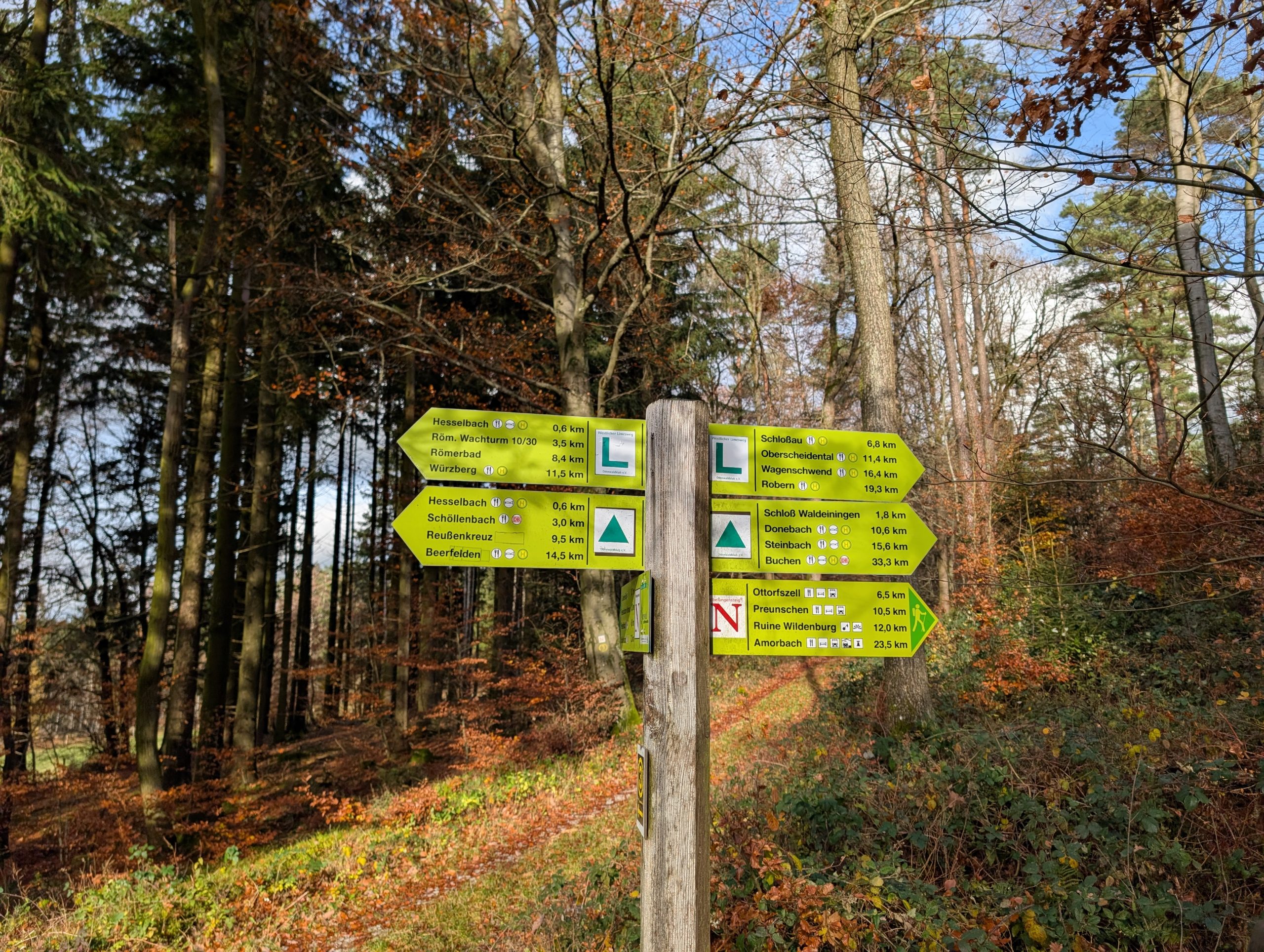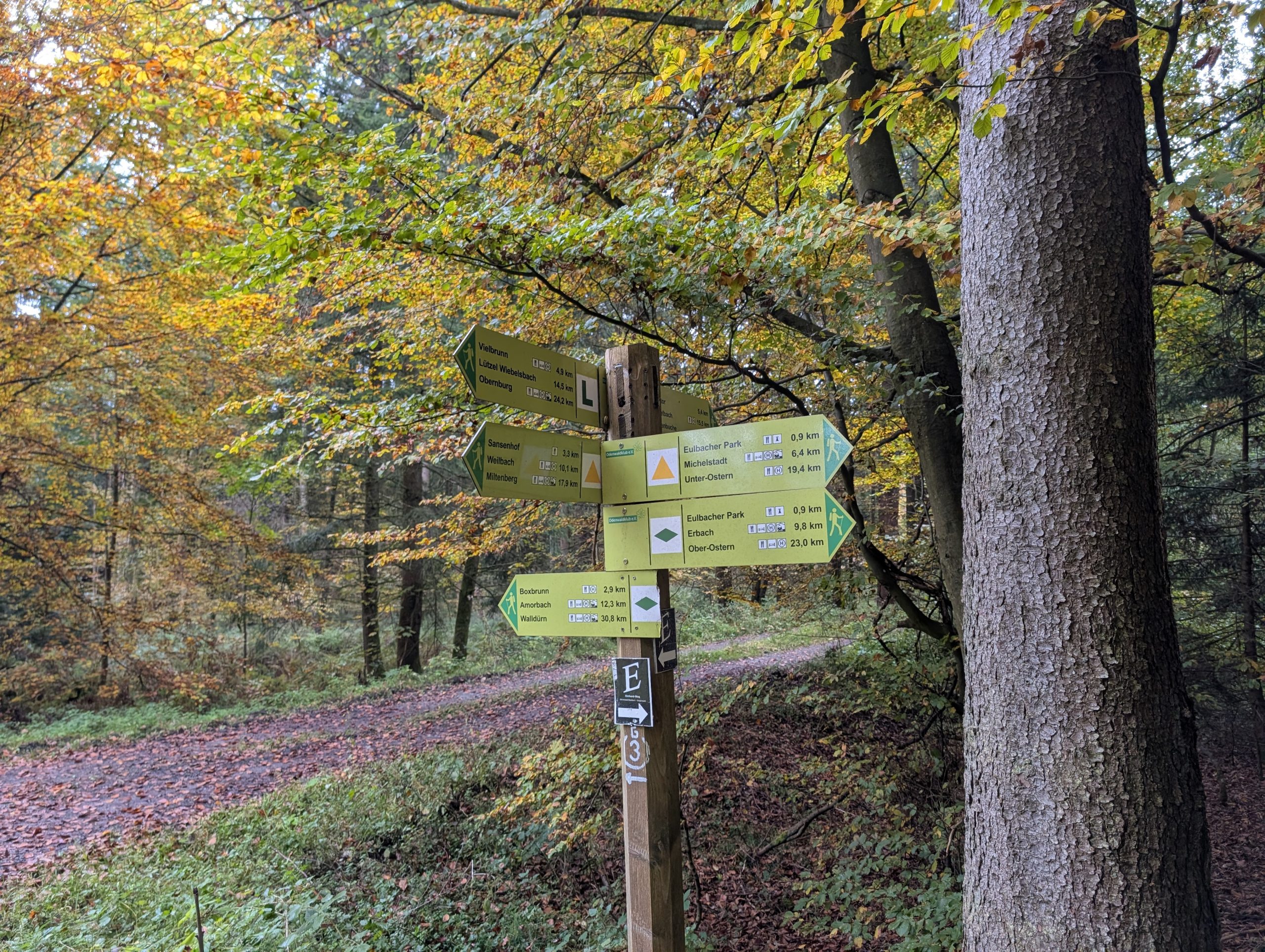 Der Nibelungenweg durchquert von Ost nach West den Odenwald. Der ist im Oktober 2024 mit allen Varianten und Extraschleifen erwandert und ein vom Basislager gut erreichbarer Nachfolger muss her.