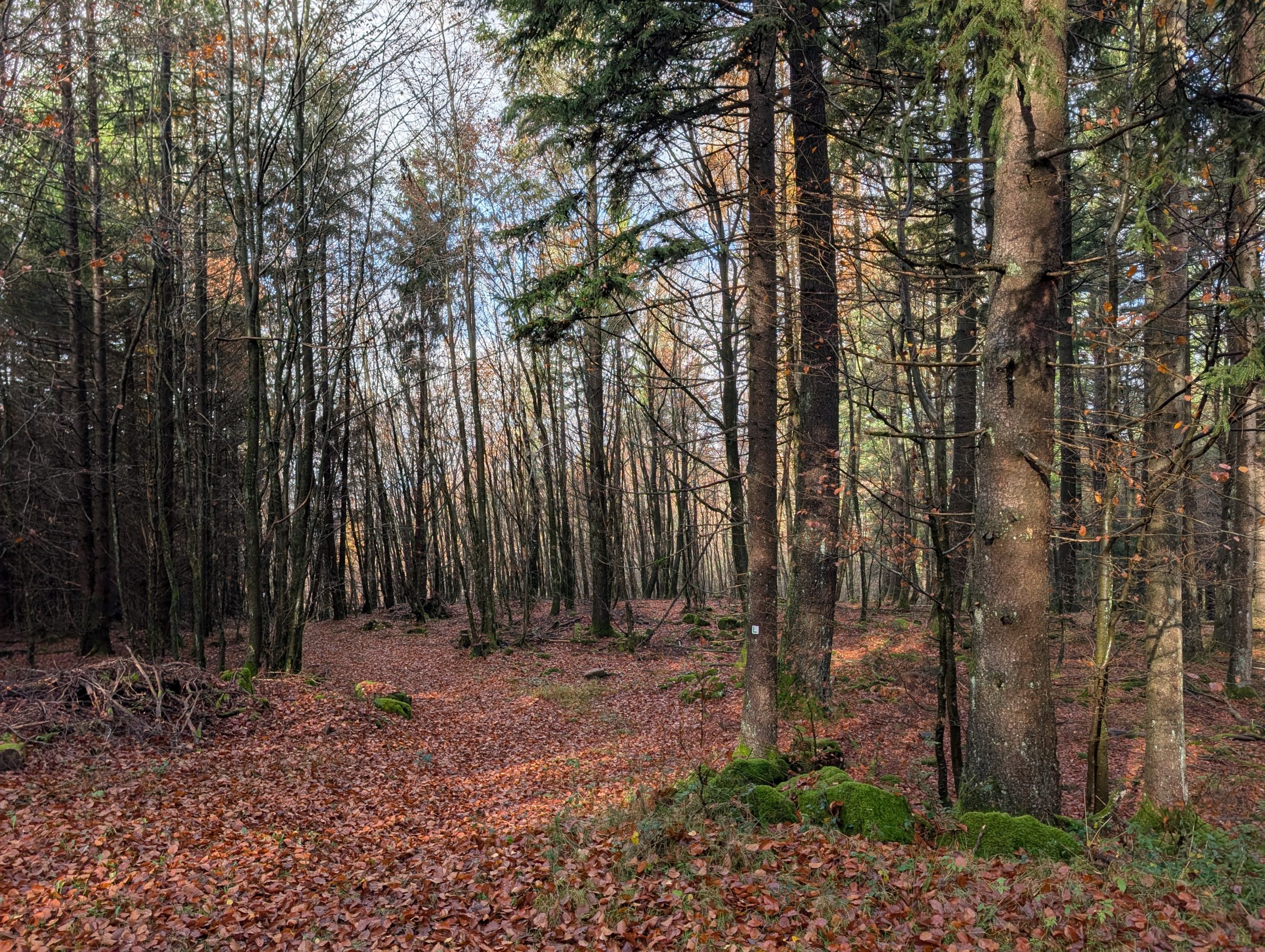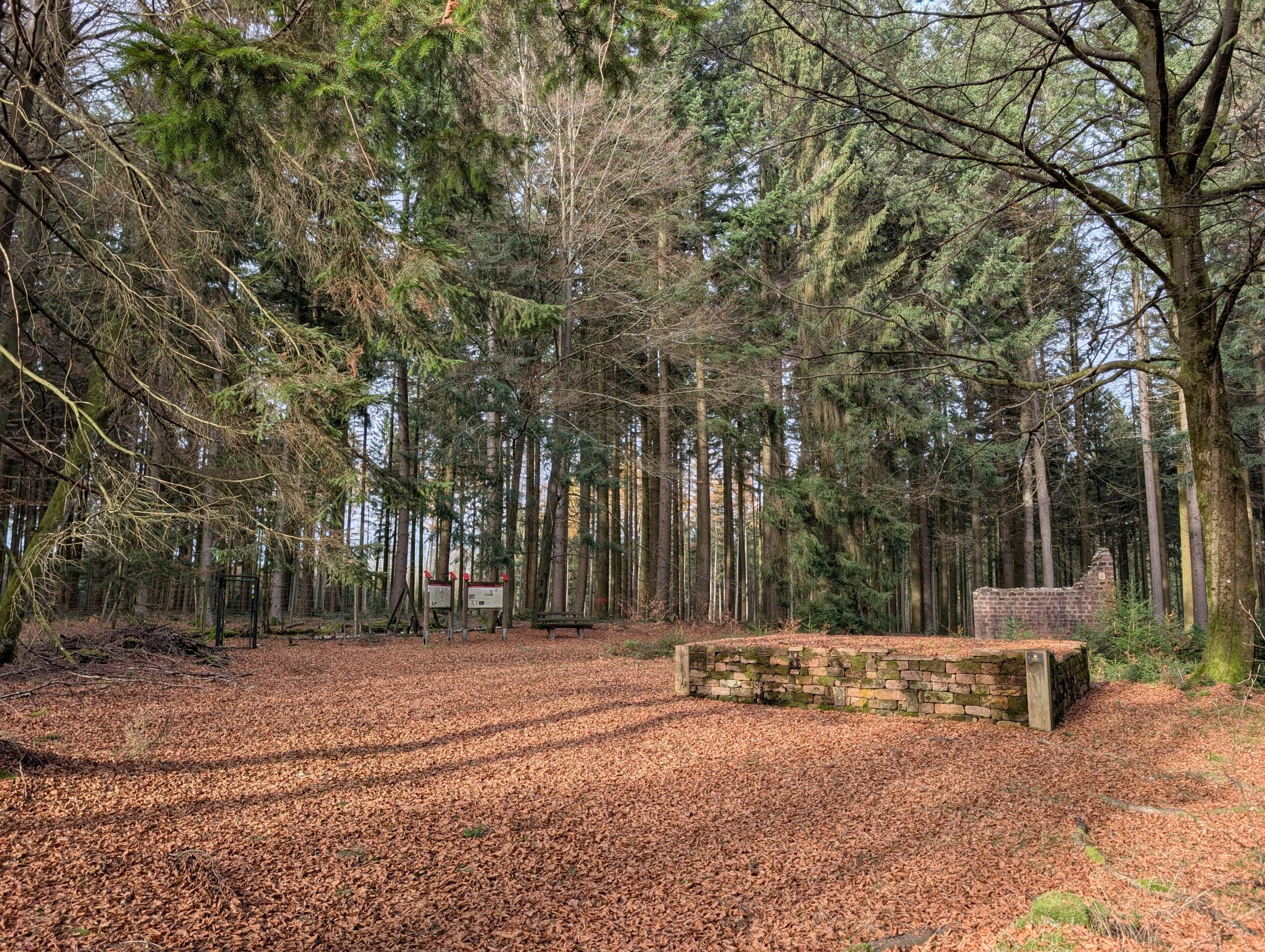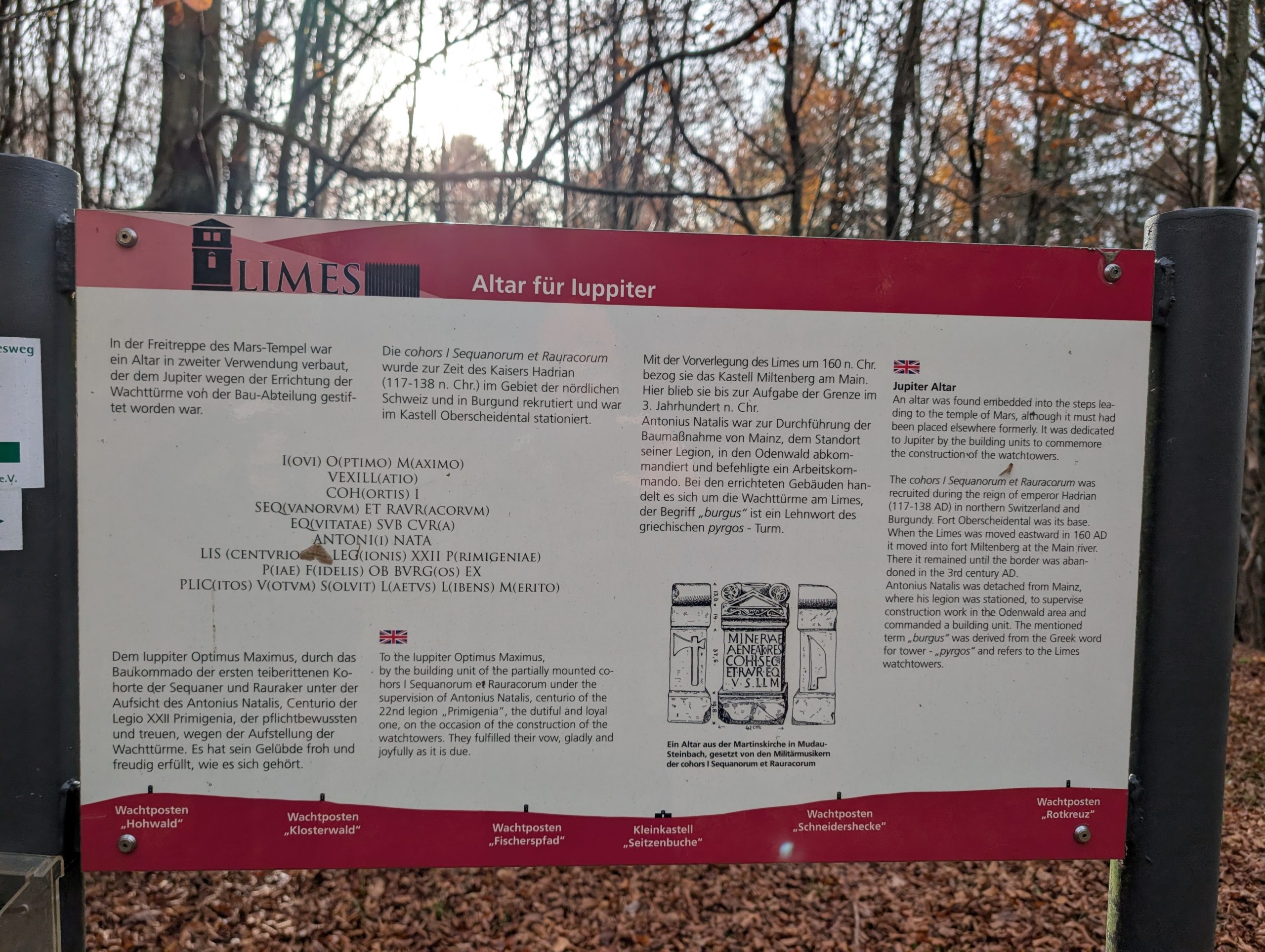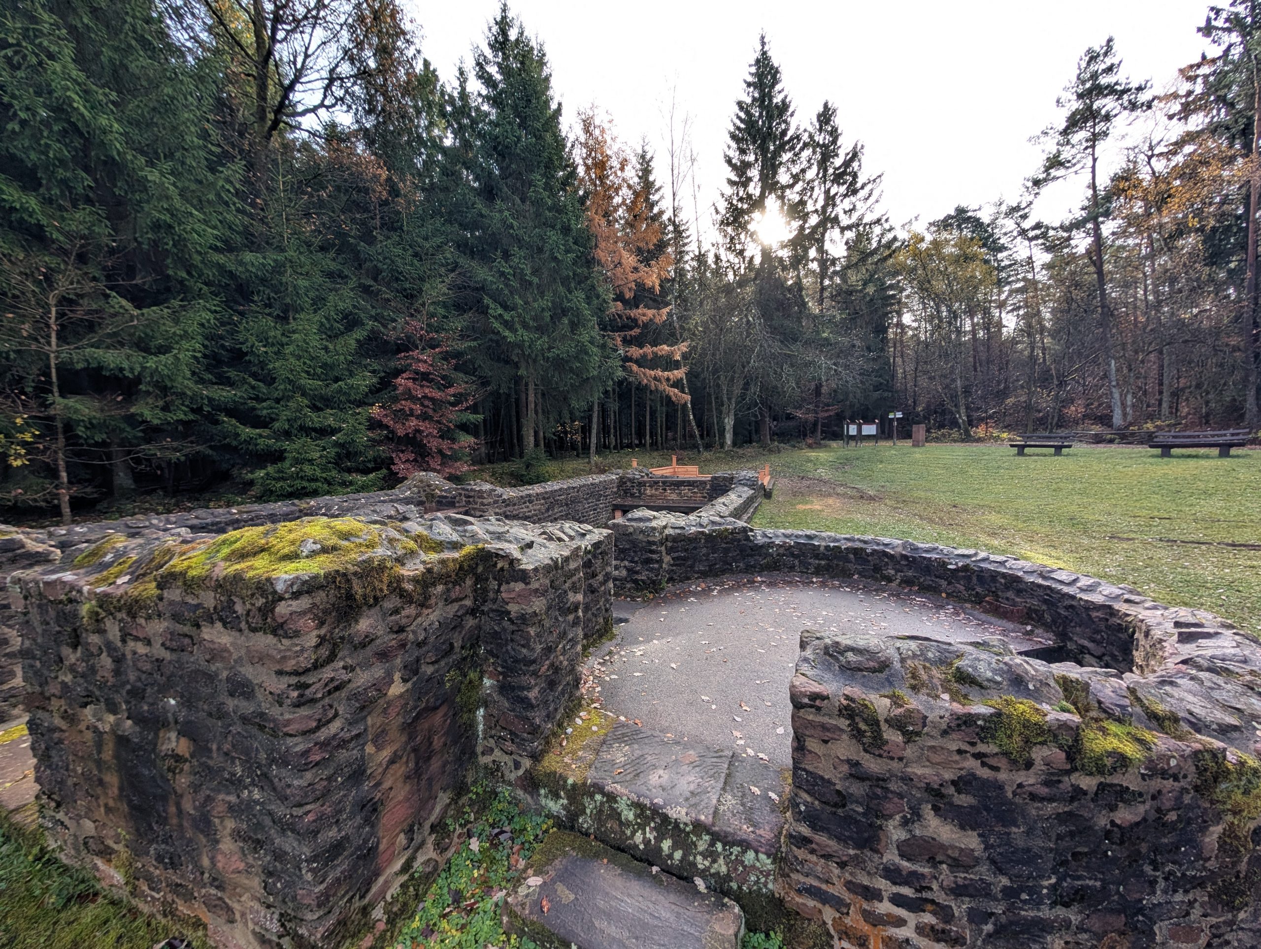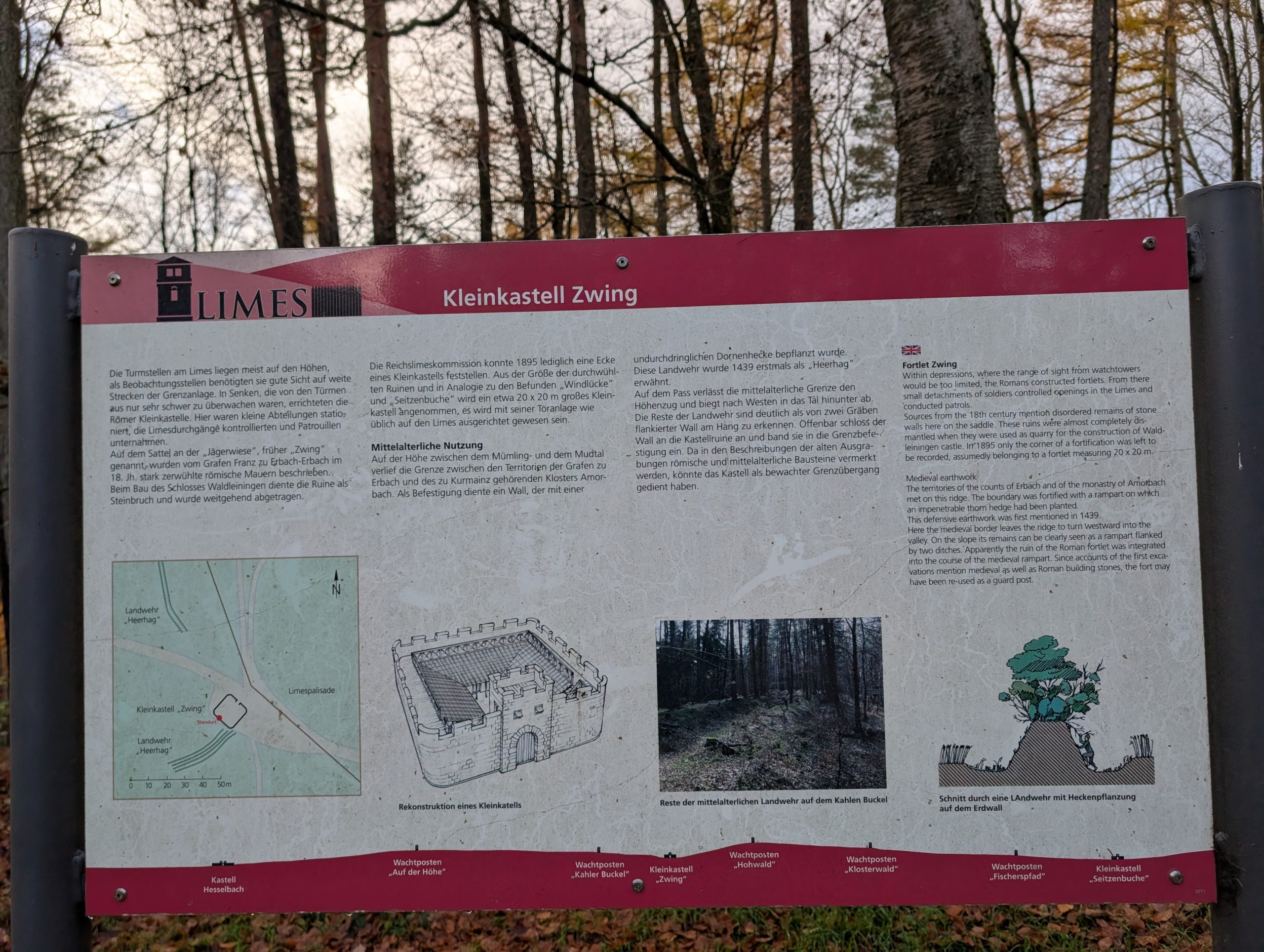 Wir starten wieder an denselben Wanderparkplatz wie zuvor. Mit dem Westlichen Limesweg geht es in Richtung Hesselbach. Dabei kommen wir an insgesamt 5 Wachposten, einer Limesmauer und einem Kleinkastell vorbei. Bei dem Berg “Hohe Langhälde” (548 m) stoßen wir auch auf dem Nibelungensteig, den wir in den letzten Jahren erwandert haben. Am Friedhof Hesselbach verlassen wir den Westlichen Limesweg und wandern mit den Örtlichen Wanderwegen 1,4,6 wieder zurück in Richtung Parkplatz, bis wir wieder auf unseren Hinweg stoßen. Auf dem Rückweg umgehen wir aber auch noch den “Hohwald” mit 552 m und können so ein paar Höhenmeter einsparen.