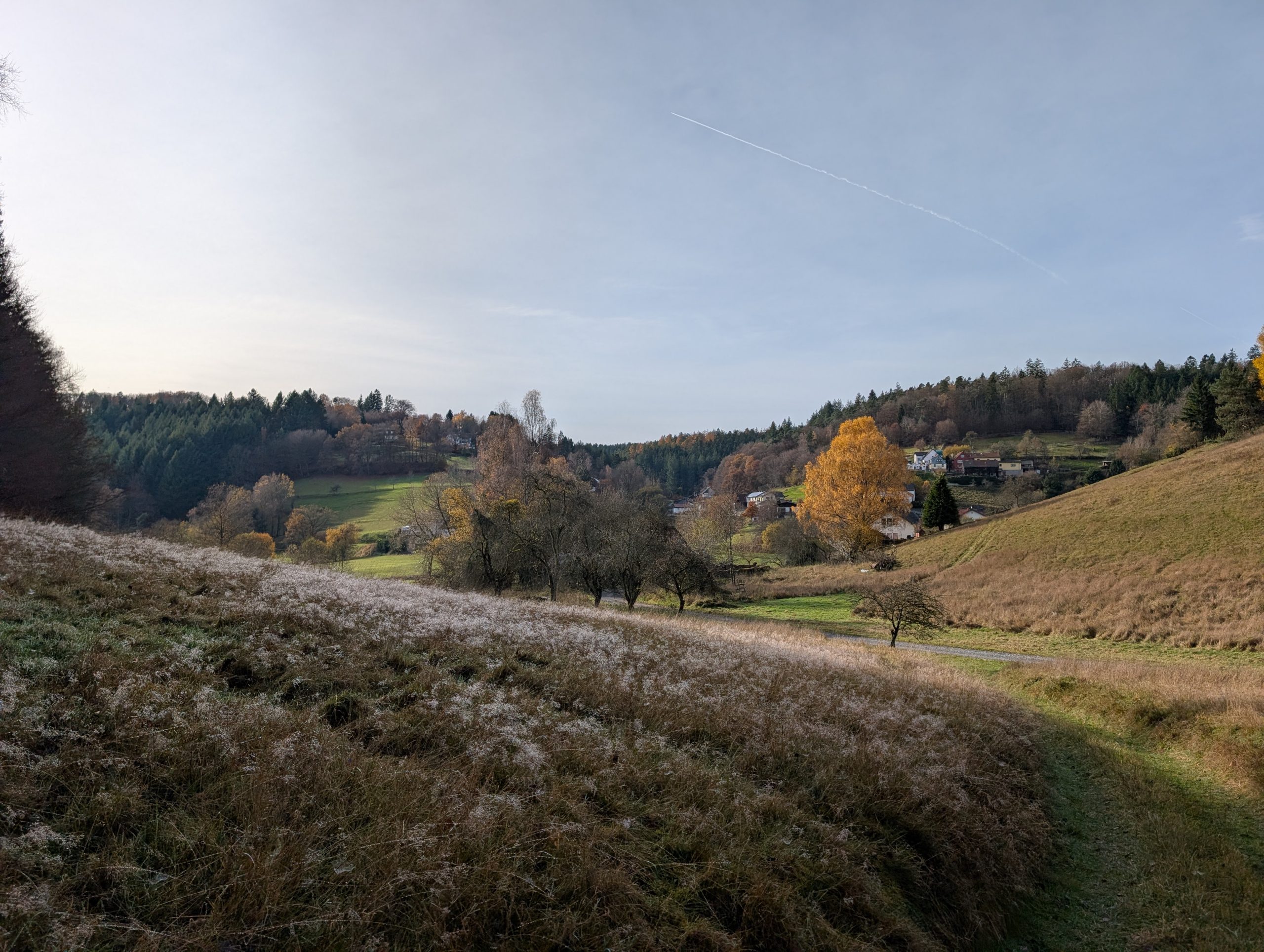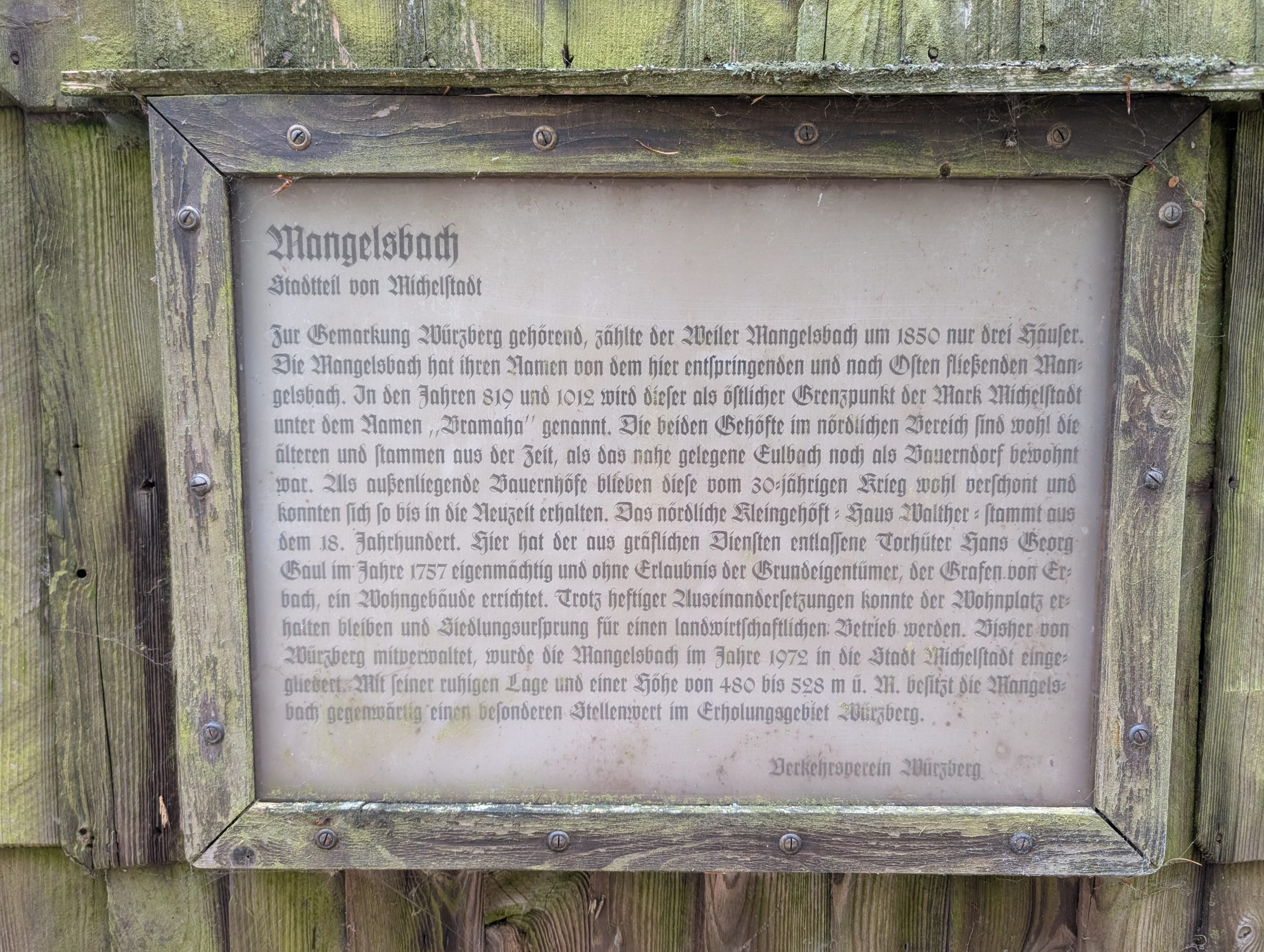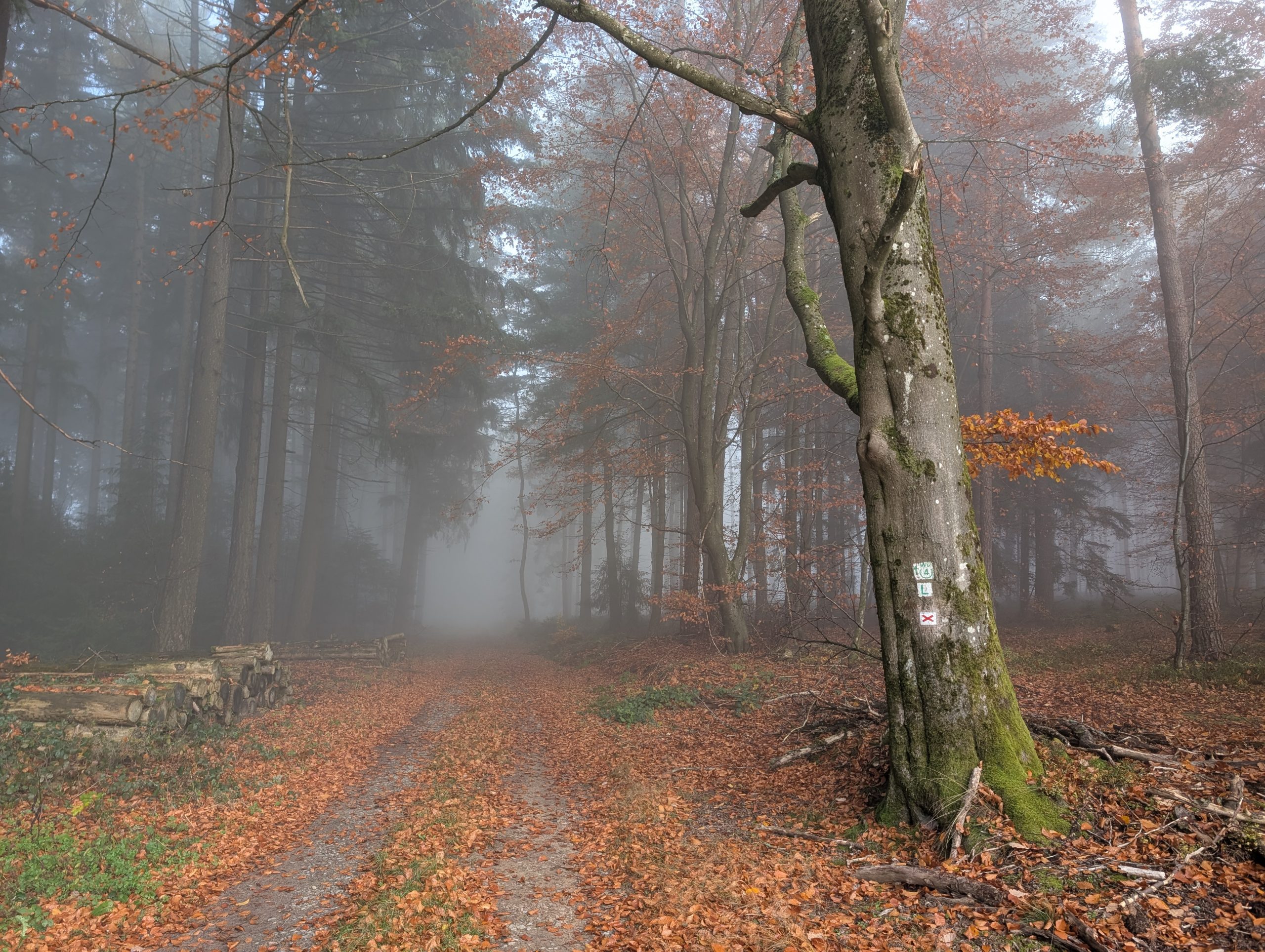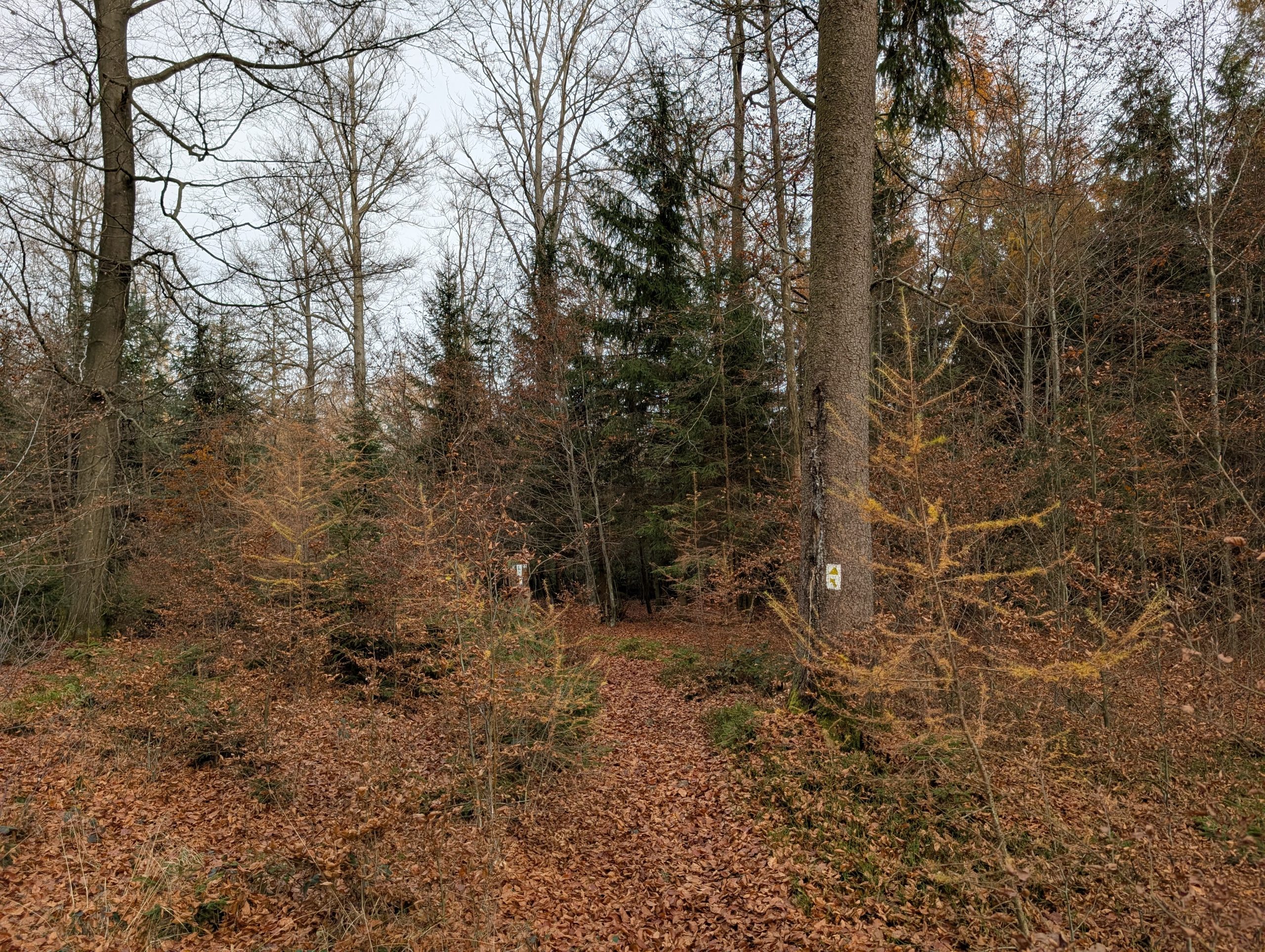 Startpunkt der Tour ist ein Wanderparkplatz bei Würzberg. Es ist ein kalter und sehr nebliger Tag und leider kommt die Sonne nicht hervor. Mit dem Westlichen Limesweg wandern wir in Richtung Mangelsbach. Hier biegen wir ab mit dem Rundwanderweg Würzberg 4 (Wü 4) und laufen im Uhrzeigersinn um Würzberg herum. Mit Wü 3 wandern wir anschließend durch Würzburg, bis wir zum Schluss wieder auf unseren Westlichen Limesweg stoßen. Er bringt uns zurück zum Parkplatz.