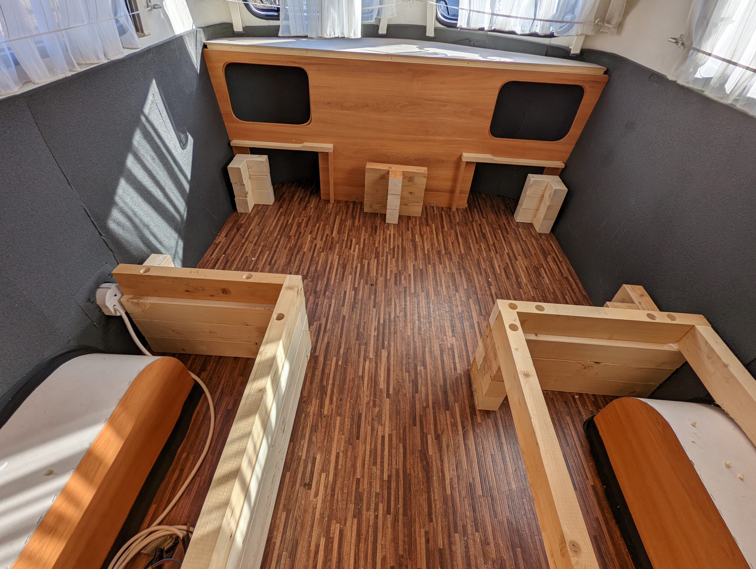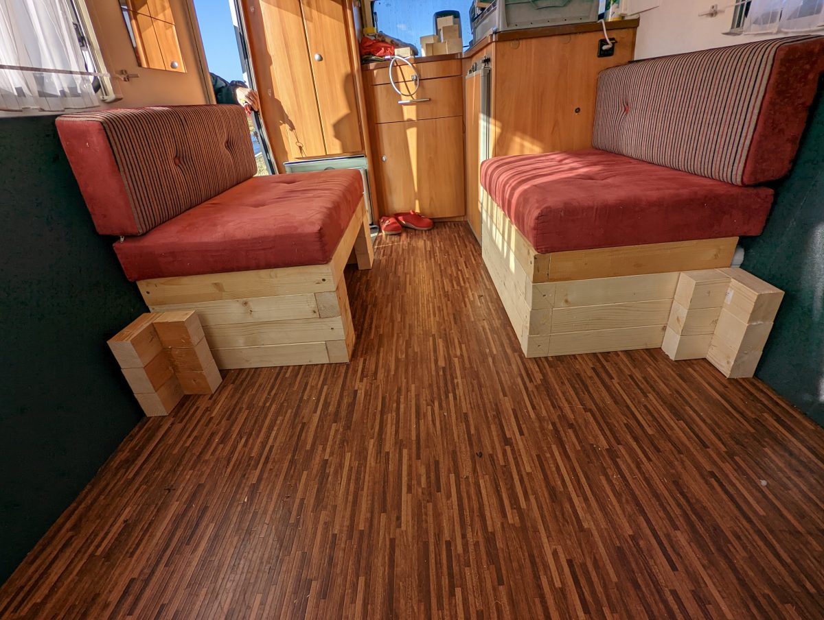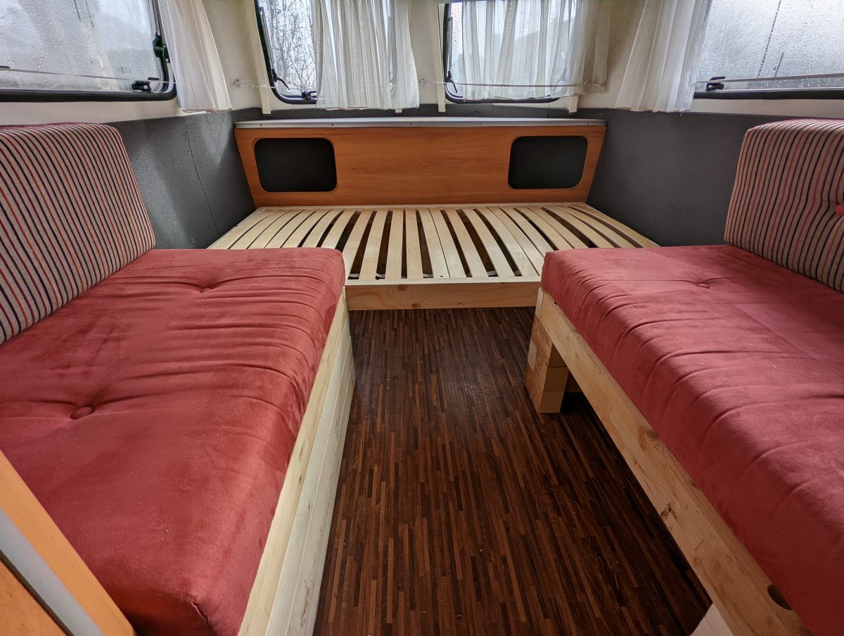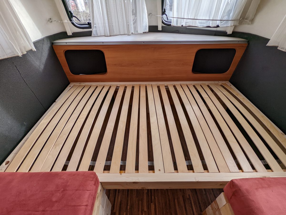 Die Unterkonstruktion der Sitz- und Schlaffläche in unserem Puck wird durch eine stabile Konstruktion ersetzt. Die ist zwar um ca. 20 kg schwerer, aber bei 670 kg Leer- und 850 kg zGG. ist das nicht wirklich ein Problem.