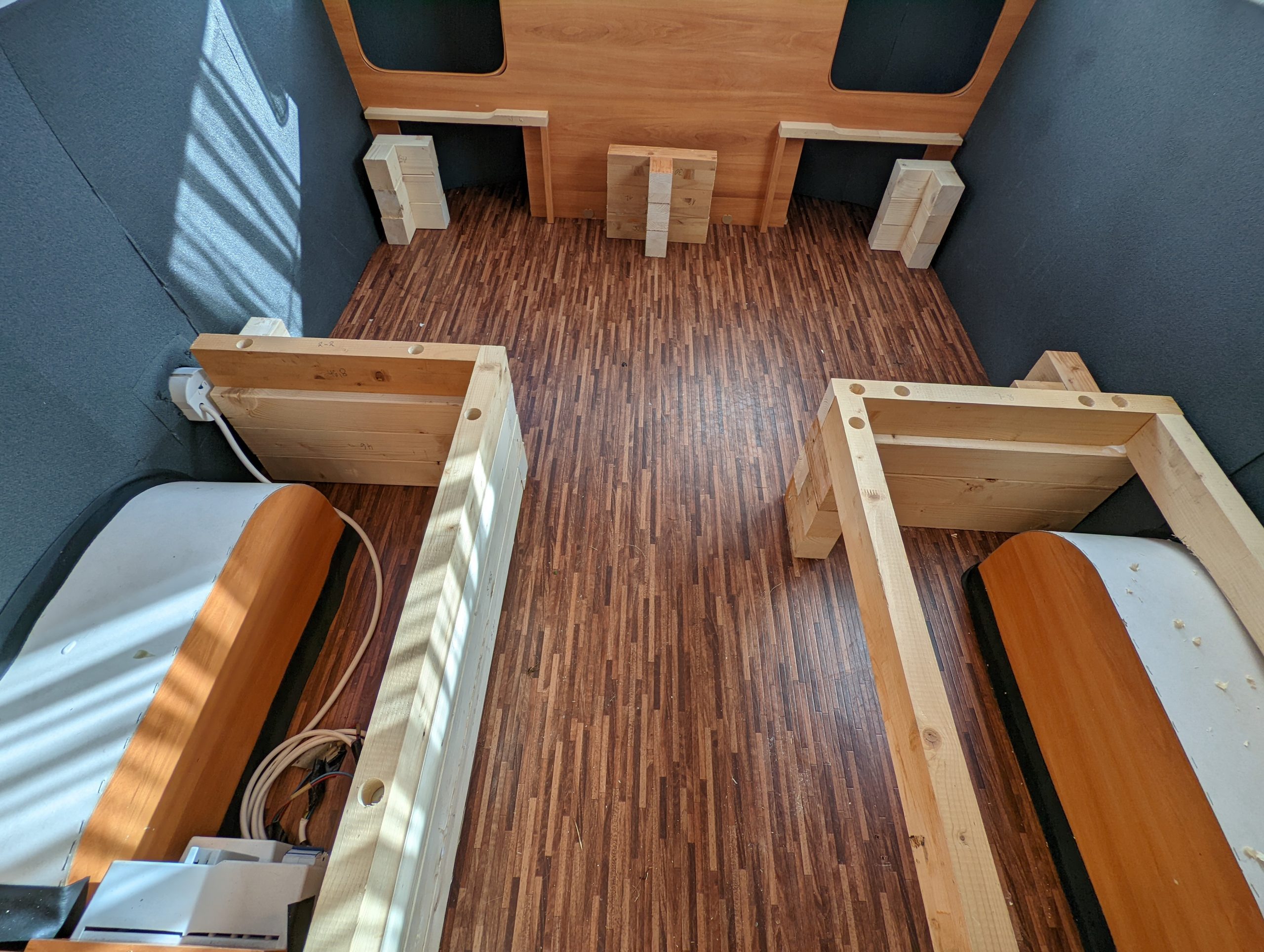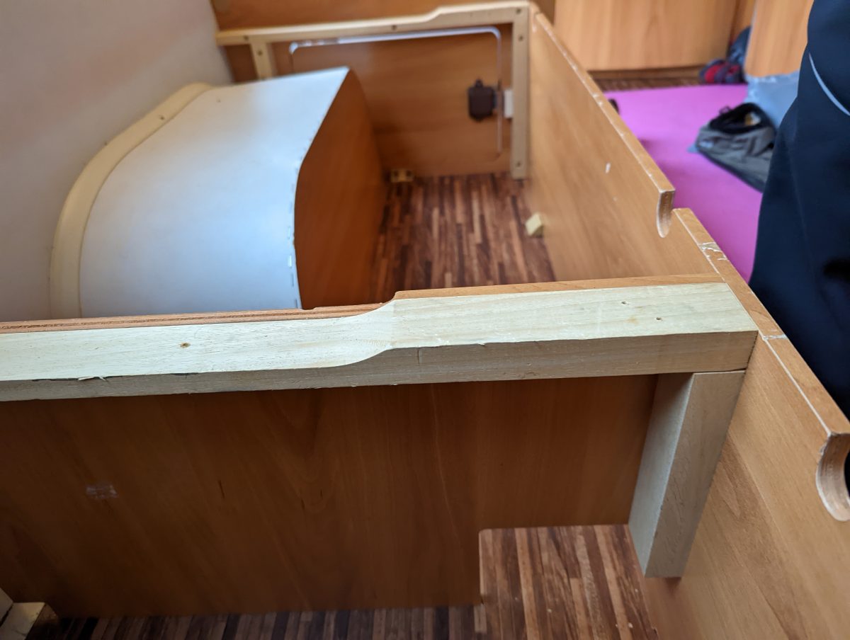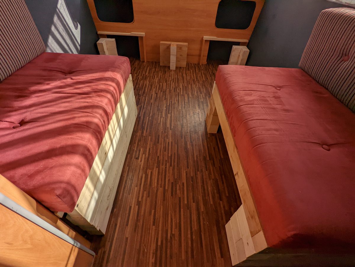 Die Unterkonstruktion der Sitz- und Schlaffläche in unserem Puck wird durch eine stabile Konstruktion ersetzt. Die ist zwar um ca. 20 kg schwerer, aber bei 670 kg Leer- und 850 kg zGG. ist das nicht wirklich ein Problem.