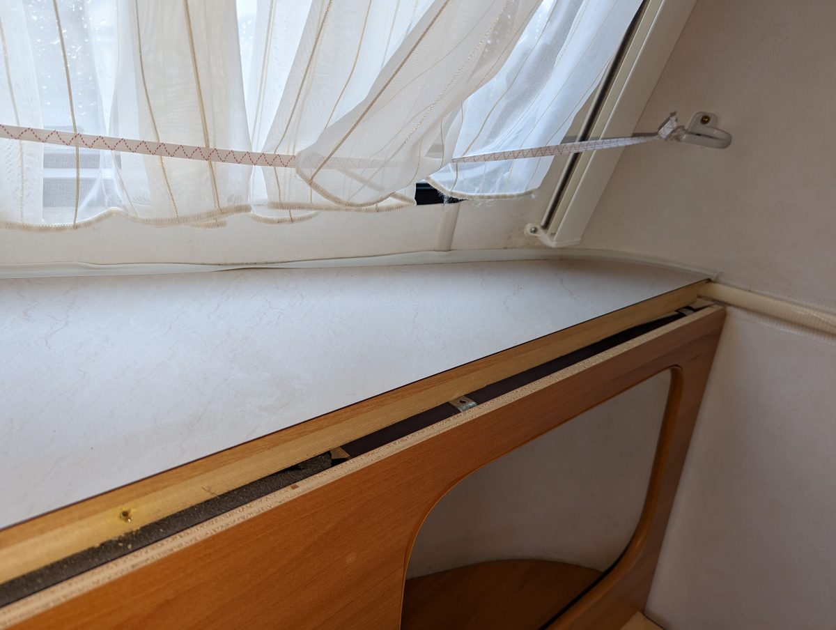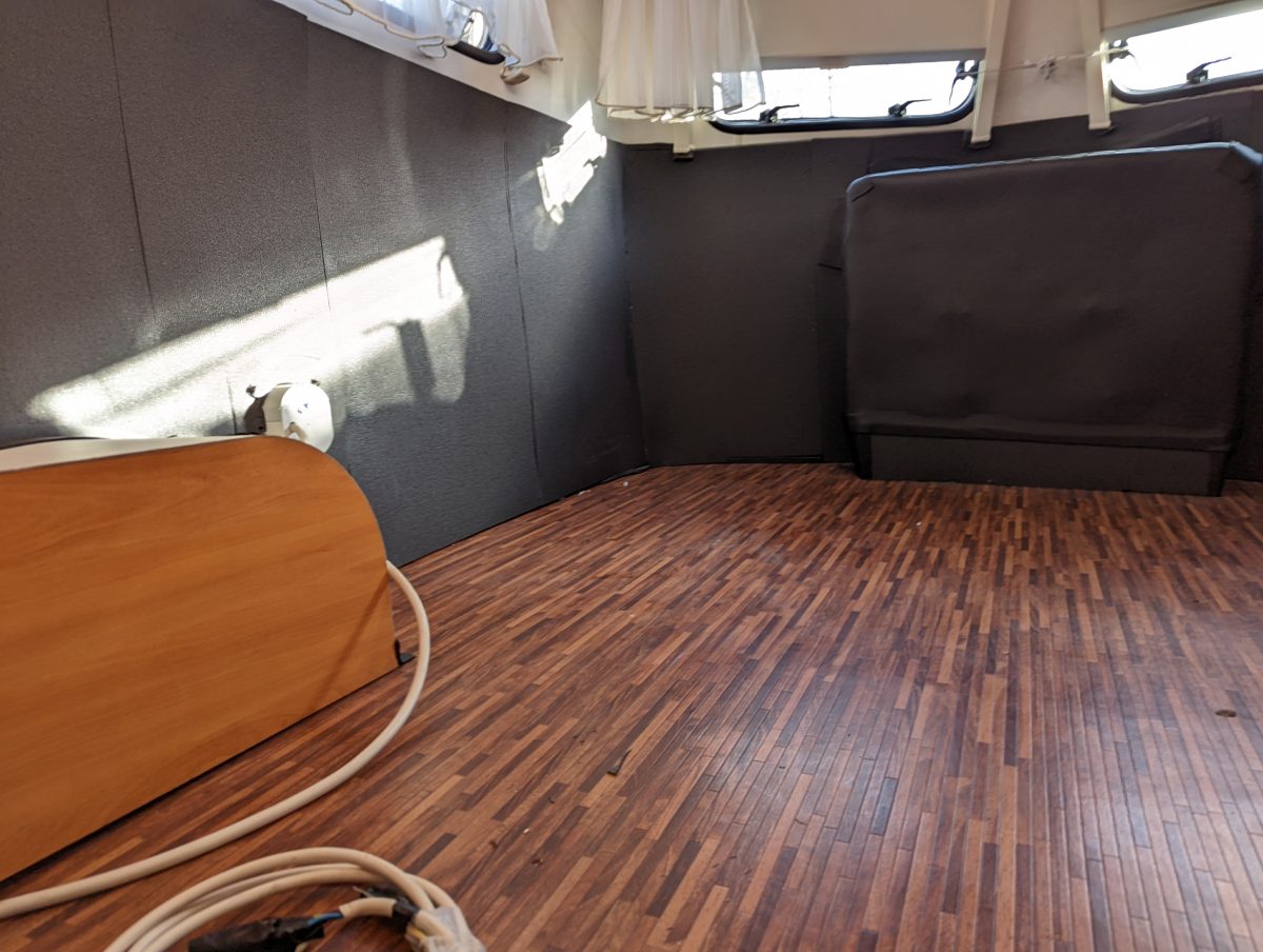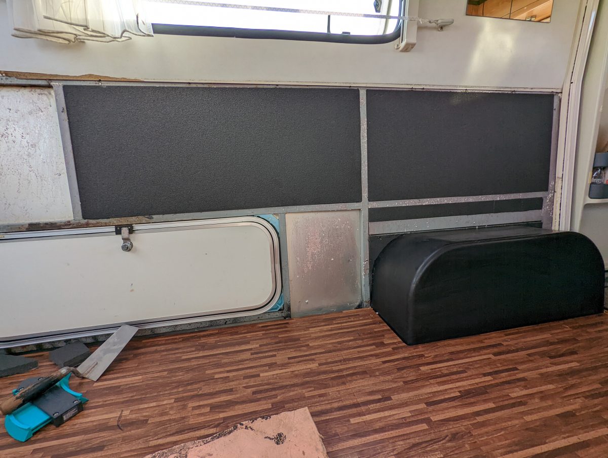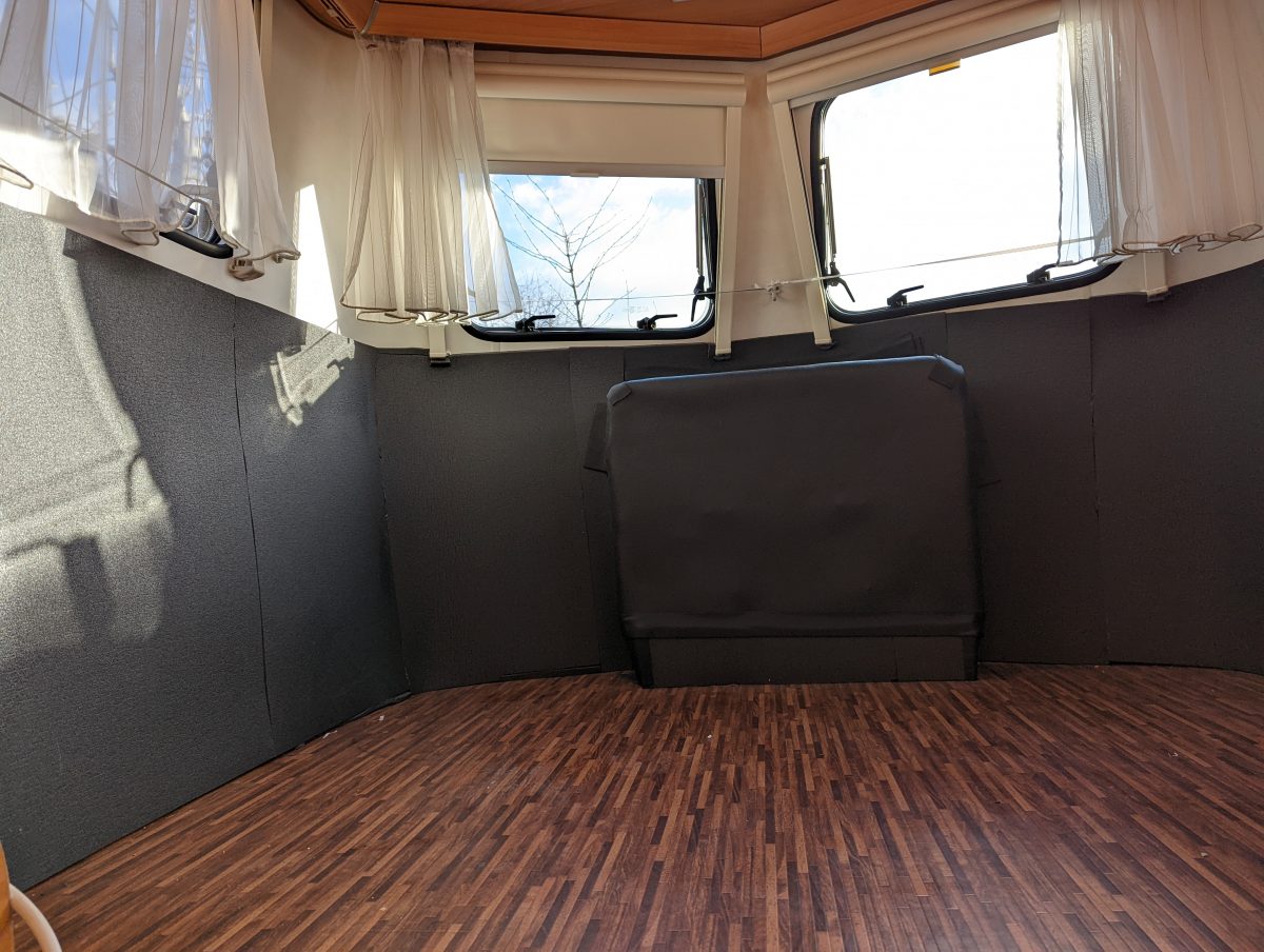 Unser Puck 235 GT Legend zeigte bei Winterbewohnung an den Seitenwänden unterhalb der Seitenfenster feuchte Stellen und aufgequollende Seitenverkleidung. Bei Nachtemperaturen um 0 Grad ist Schwitzwasser ein Problem und nach dem Wasserschaden am Kamin wollen wir im Wohnraum links der Tür, im Bug rund um den Deichselkasten und auf der linken Seite weiter bis zum Kühlschrank vernünftig isolieren und Liege- und Sitzmöbel einbauen, die eine Hinterlüftung ermöglichen.